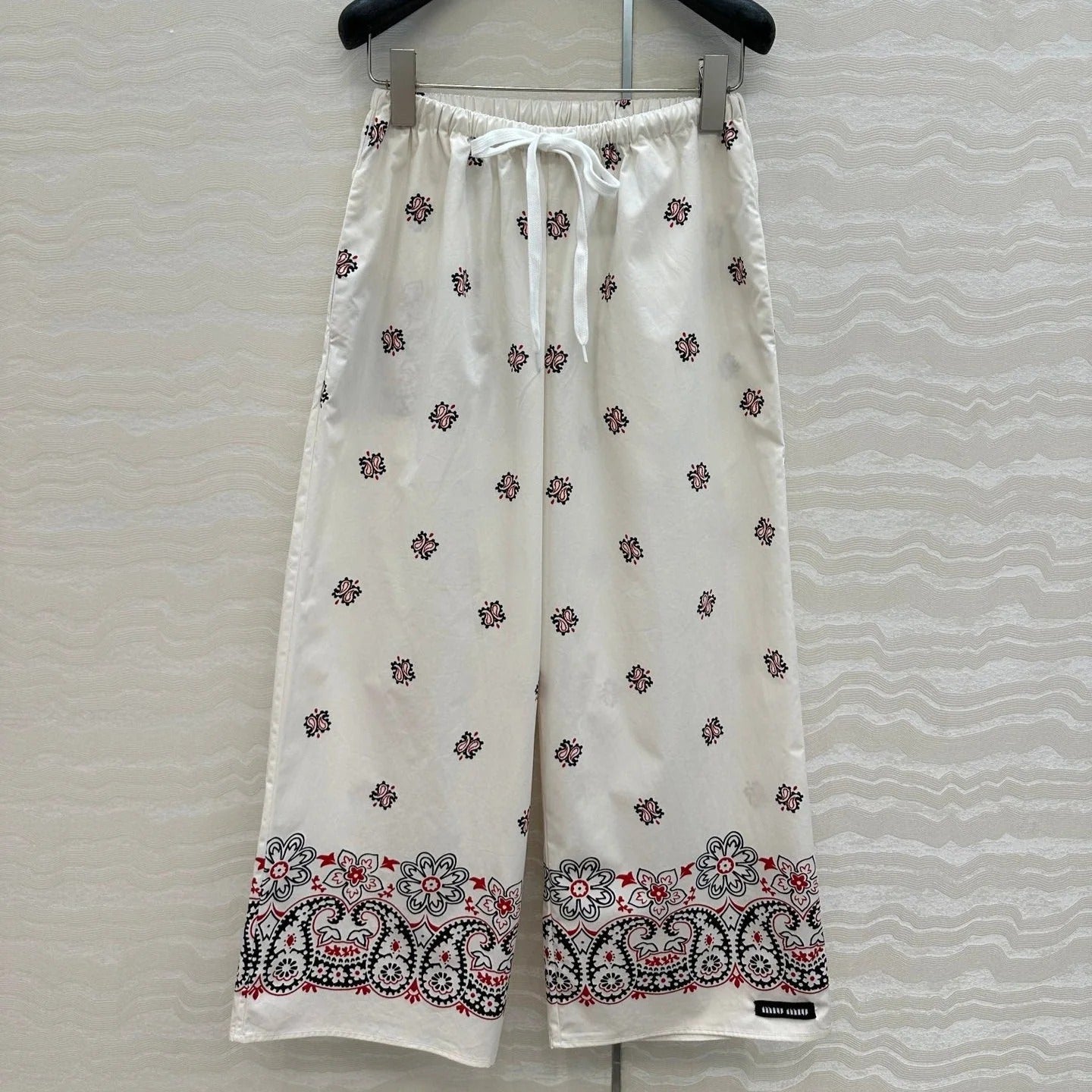 MIUMIU HIGH-WAISTED WIDE-LEG PANTS WITH BOW 276652