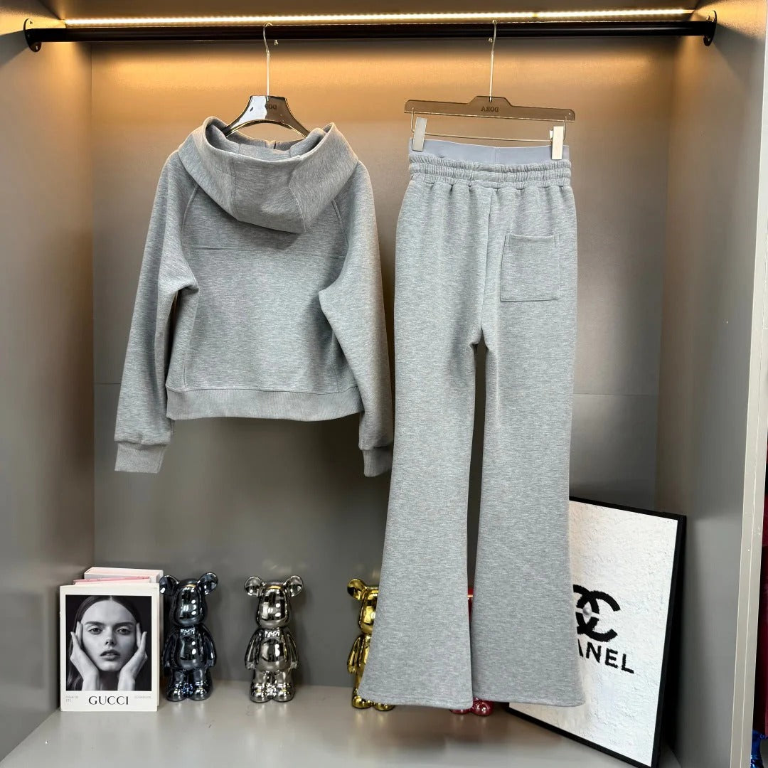 MIUMIU FLEECE TOP AND FLARED PANTS SET STYLE 216