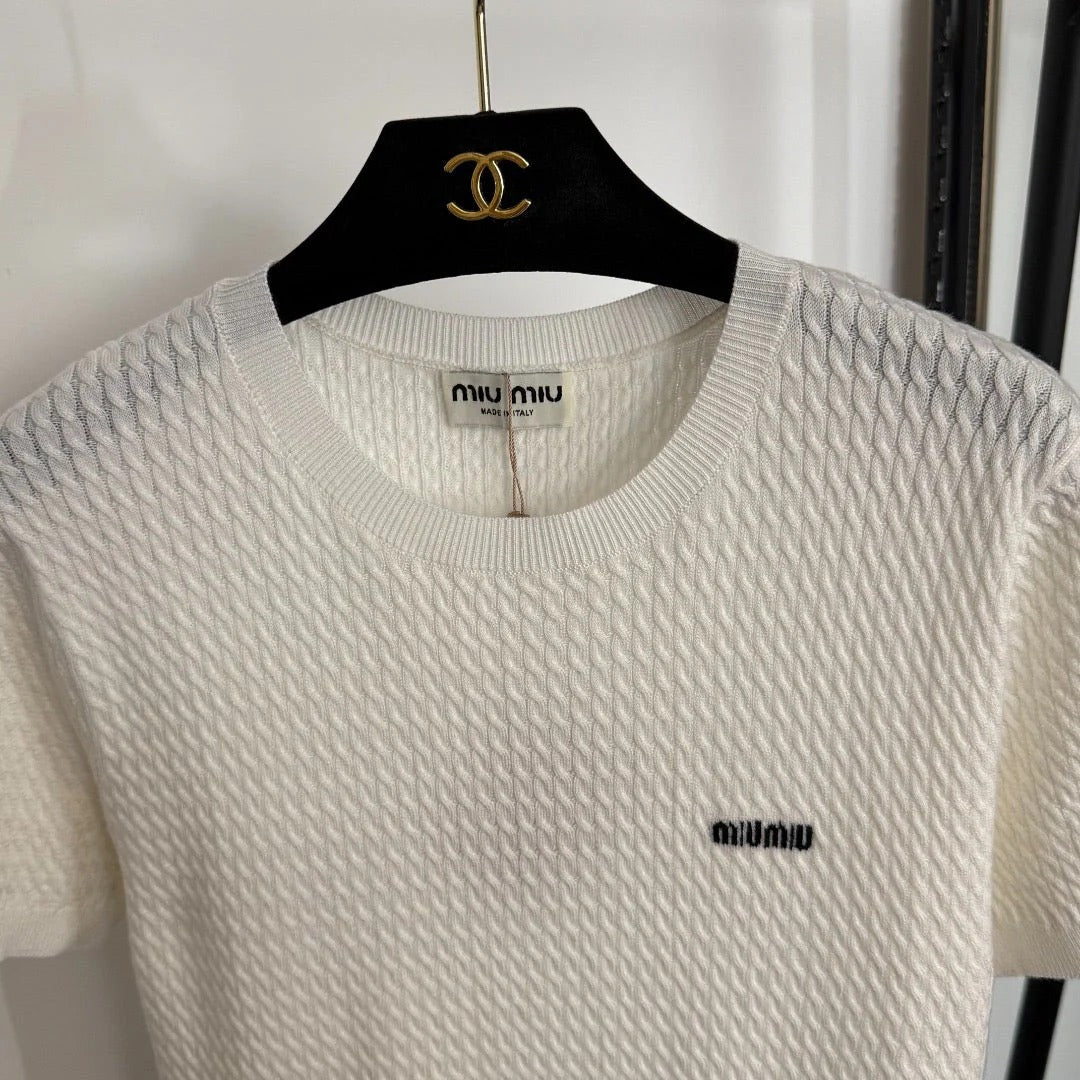 MIUMIU SHORT-SLEEVE KNIT TOP STYLE 384