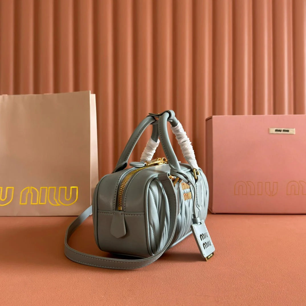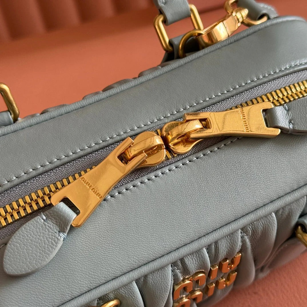 ARCADIE MATELASSÉ BAG 22 OLIVE GRAY IN CALFSKIN GOLD HARDWARE