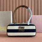 BEAU BAG 28 BLUE AND BEIGE STRIPES IN CANVAS AND CALFSKIN