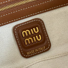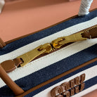 Miu Beau Small Bag 28cm Soft Beige Mix Dark Navy Blue Brown Cotton Cowhide 257951