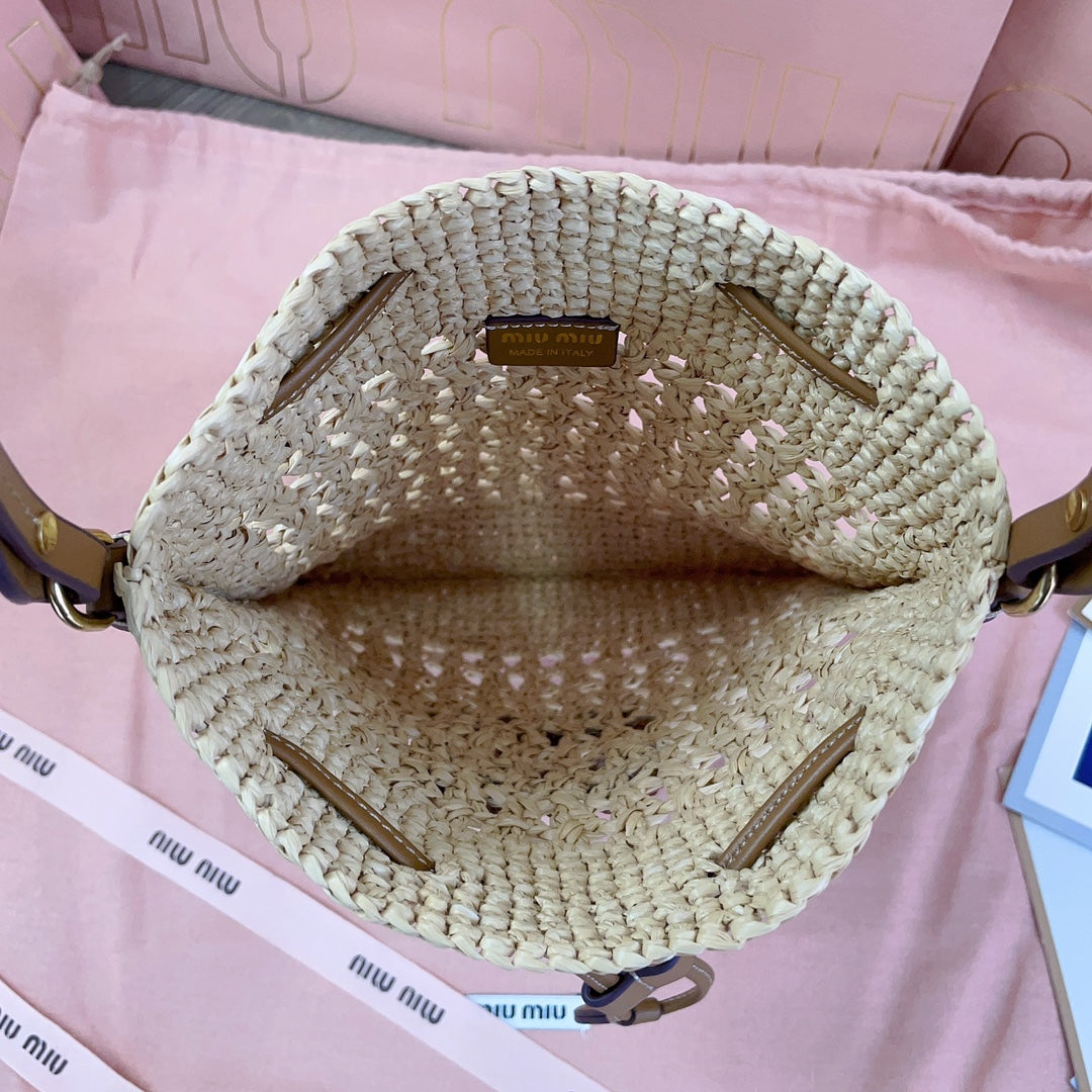 miu bucket bag 20cm beige woven fabric