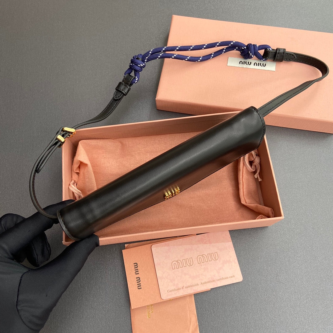 Miu Logo Wallet On A Chain 19 Lettering Black Calfskin 240411