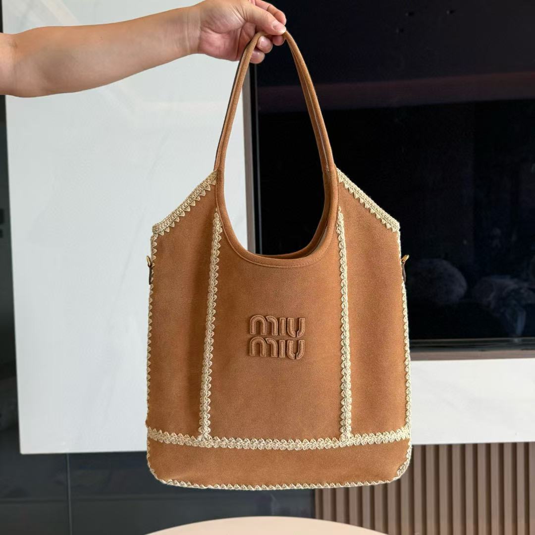 Miumiu Ivy Tote Bag 40 Brown Suede