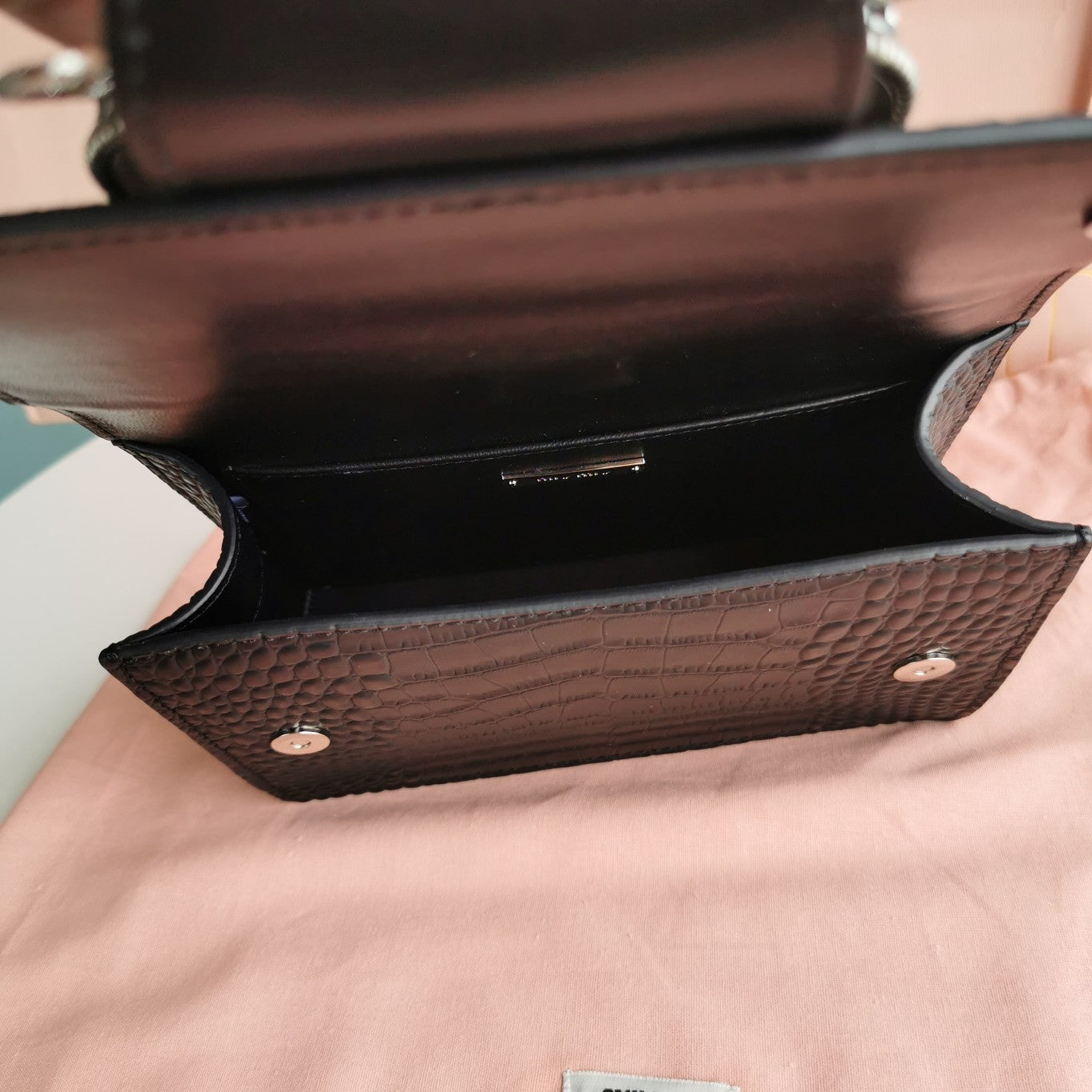 LADY 20 HANDBAG IN CROCODILE PATTERN BLACK CALFSKIN