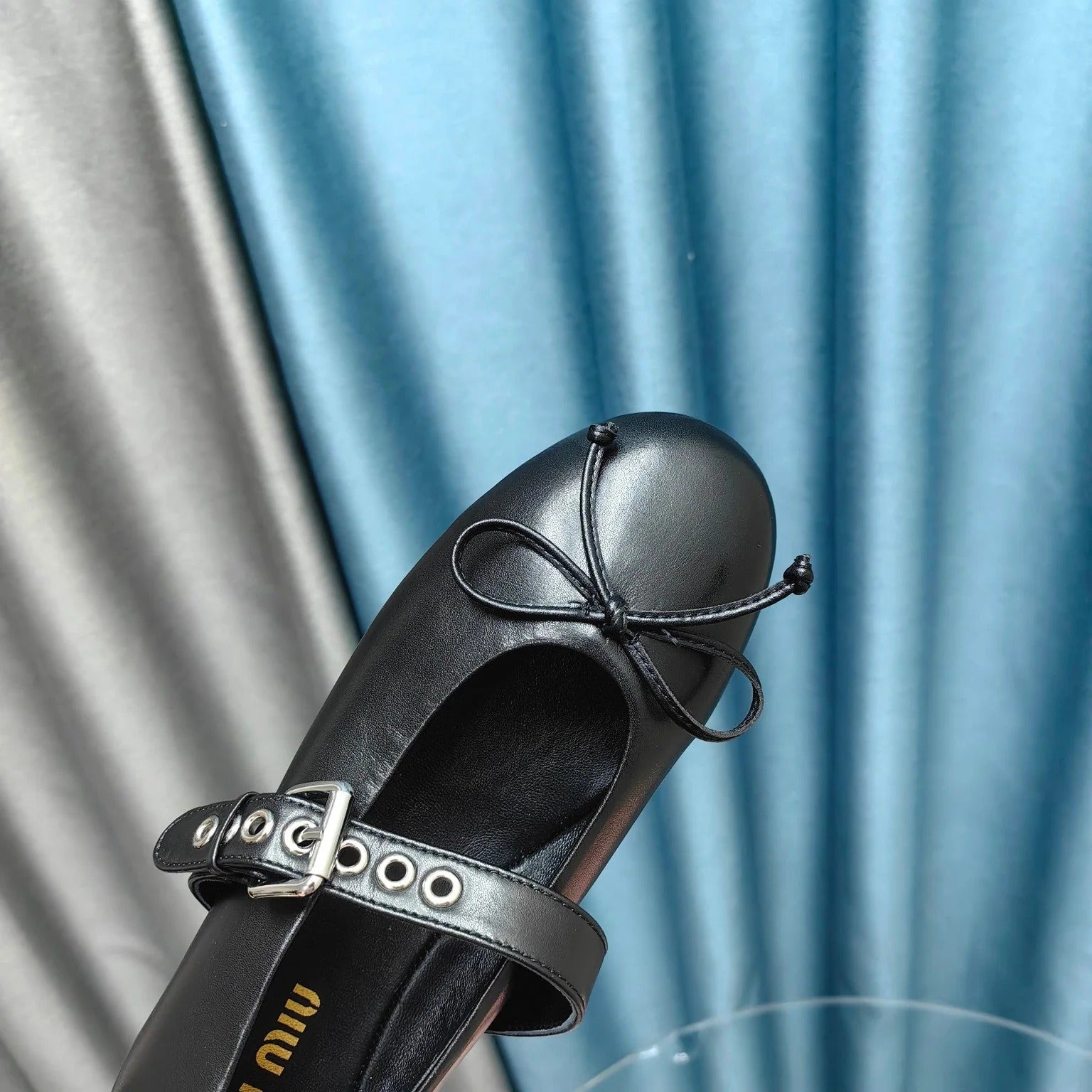 BLACK BALLET SHOES COWHIDE WITH BUTTON