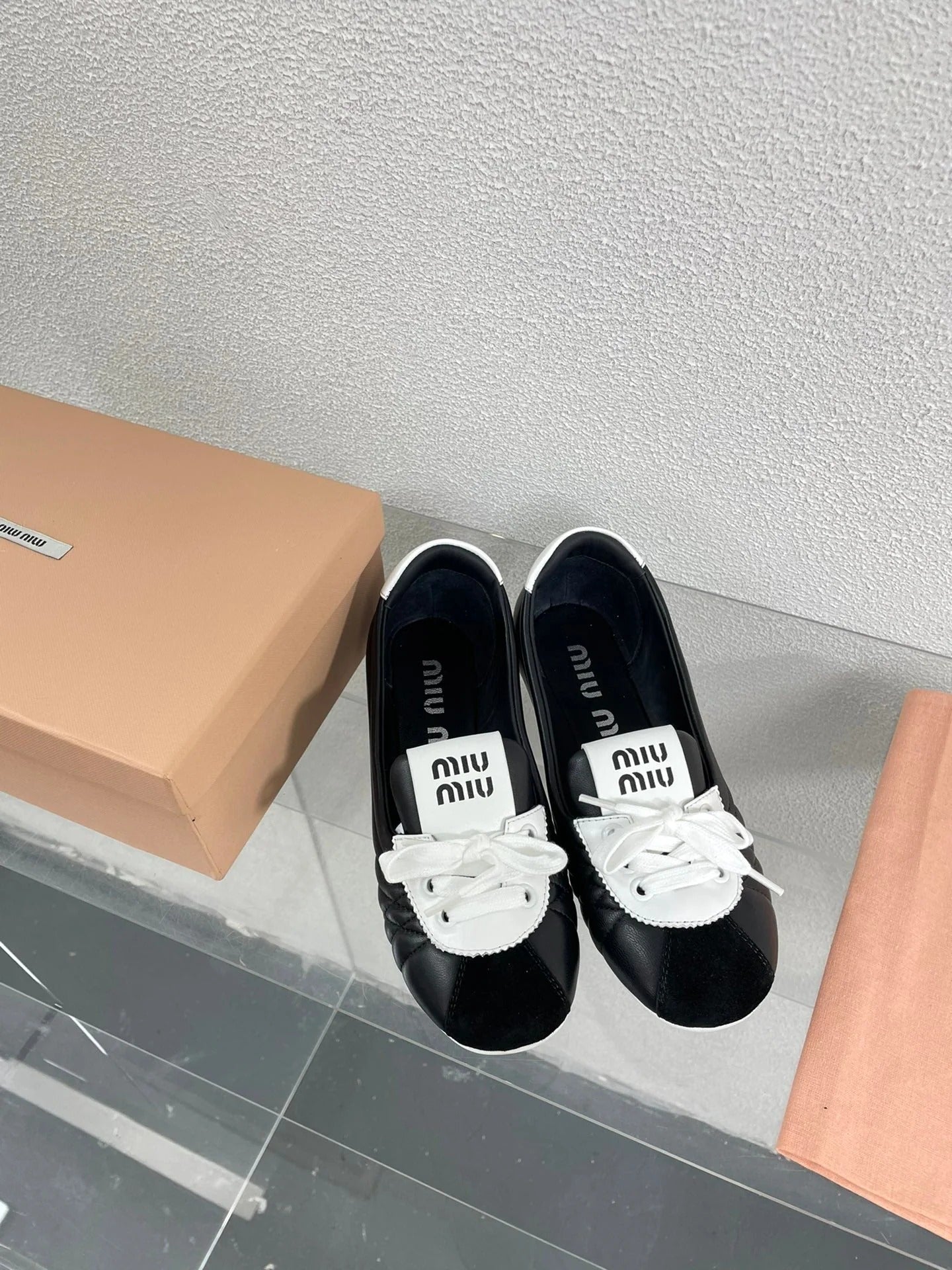 Black Leather Ballet Flats With White