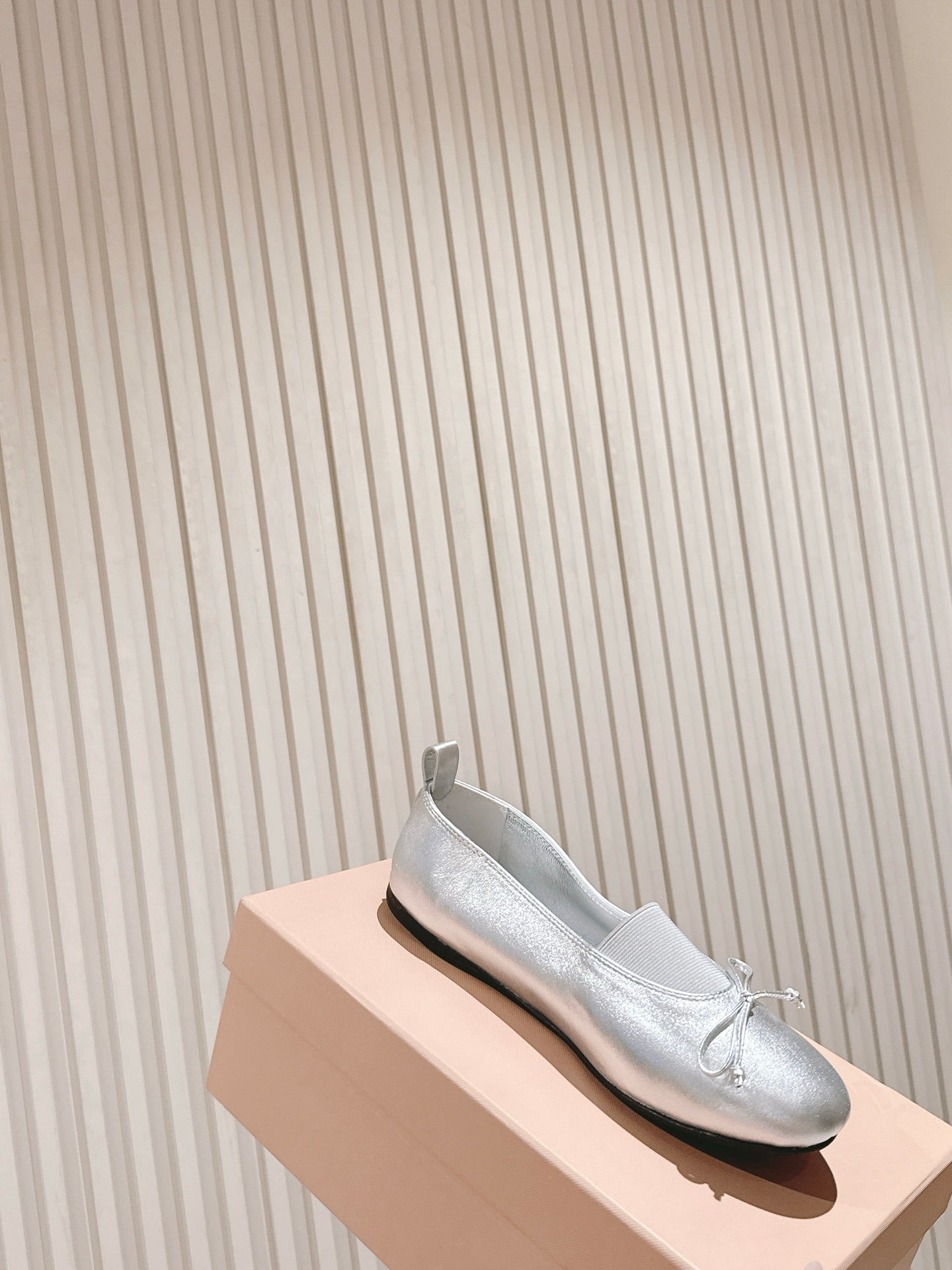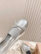 Miu Élan Bow-Detail Ballet Flat Sliver Metallic Leather 445803