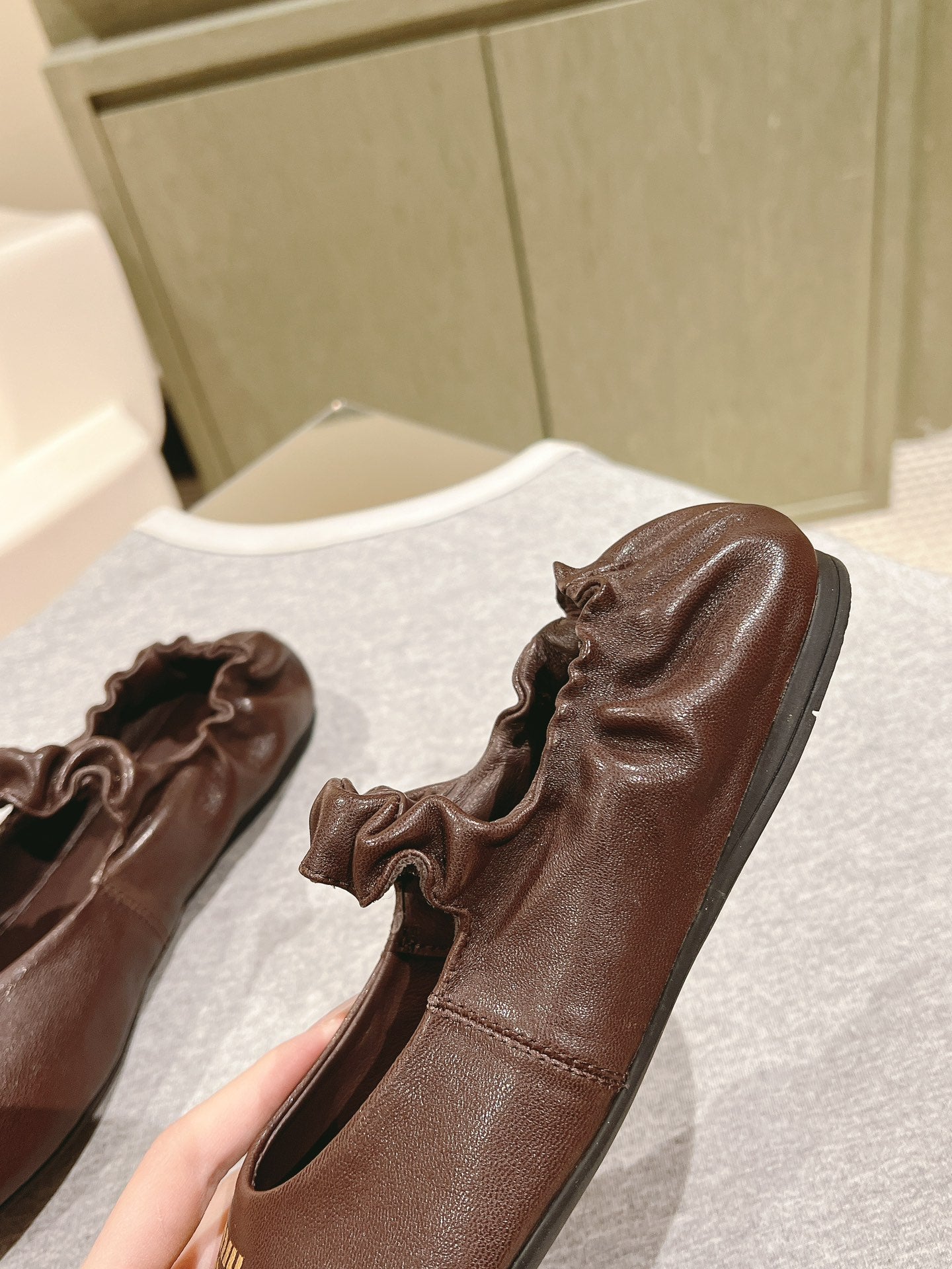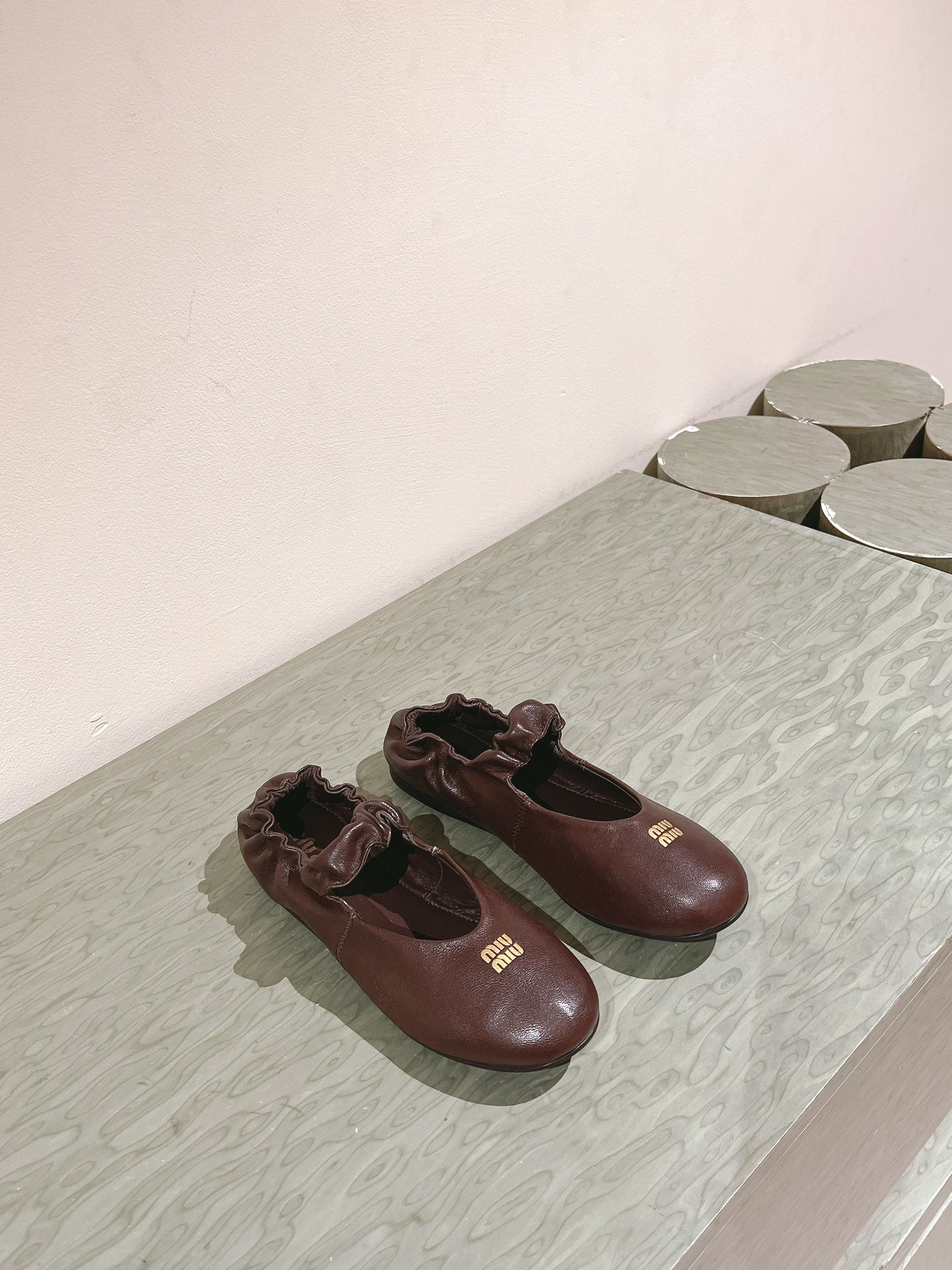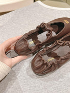 Miu Ruches Ballet Flat Brown Lambskin 445667