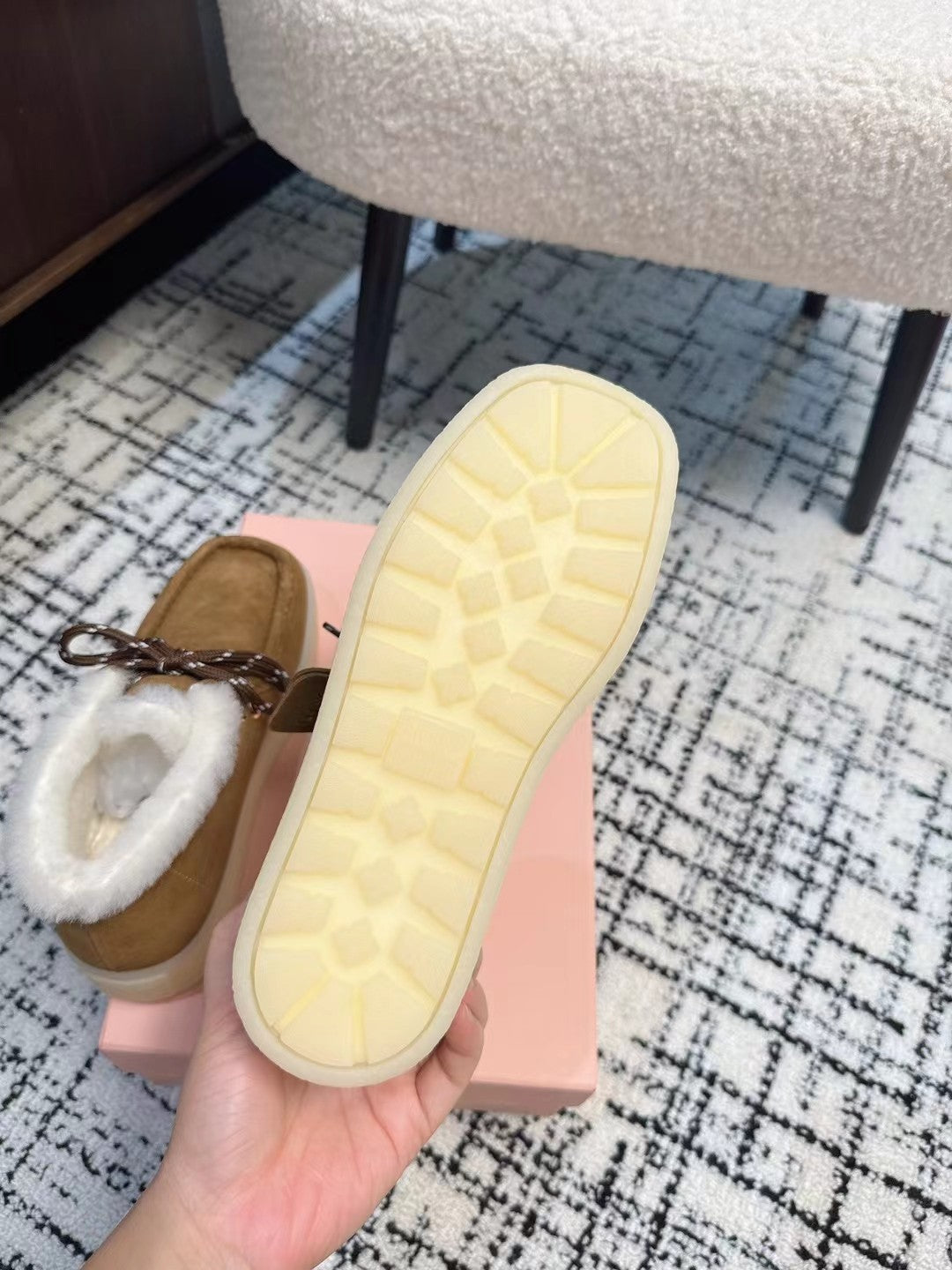 Miu Ankle Boots Brown Yellow Fleece Lining Cow Suede