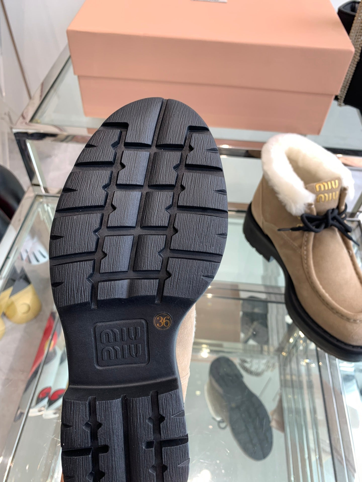 Miu Ankle Boots Khaki Brown Open-Hemmed Cowhide