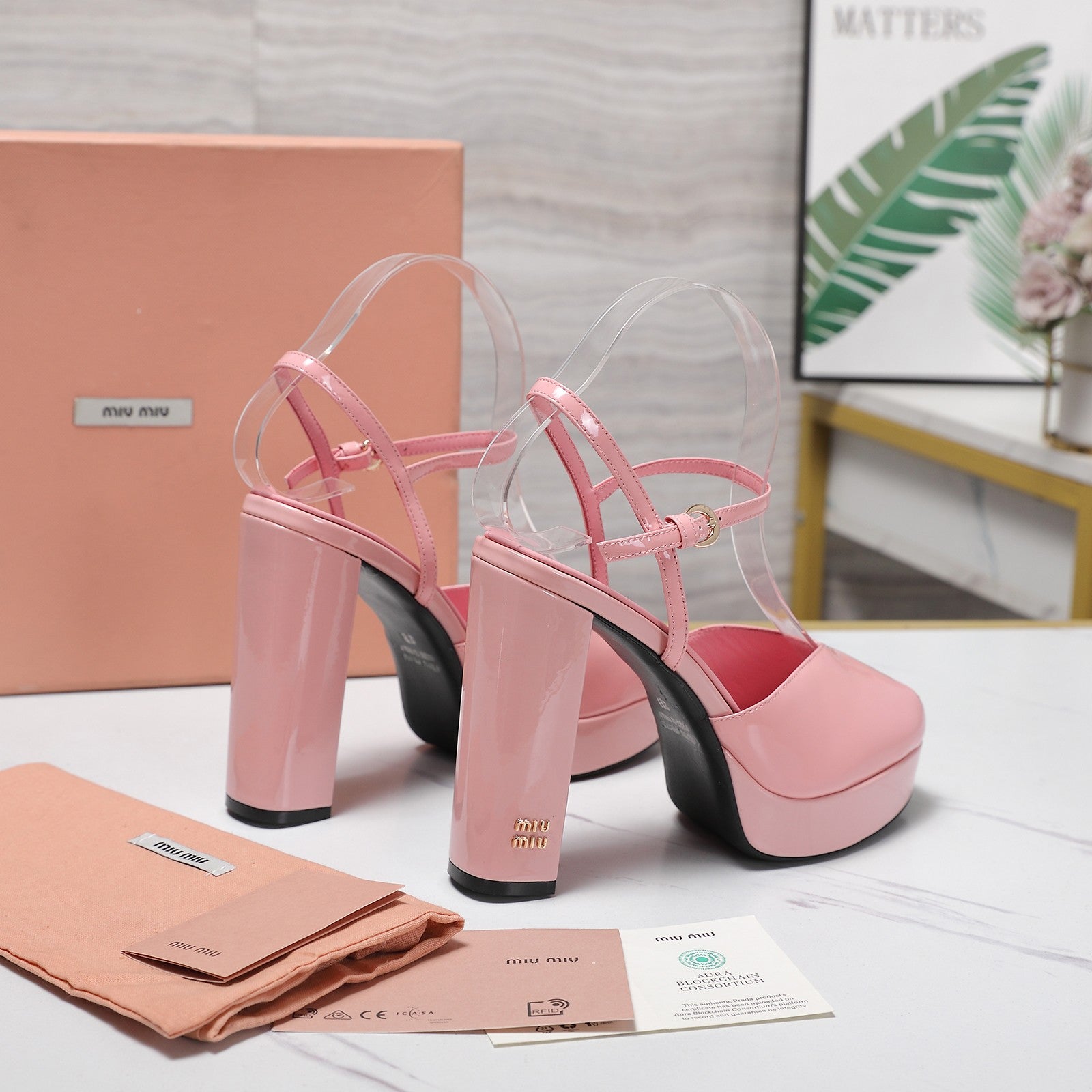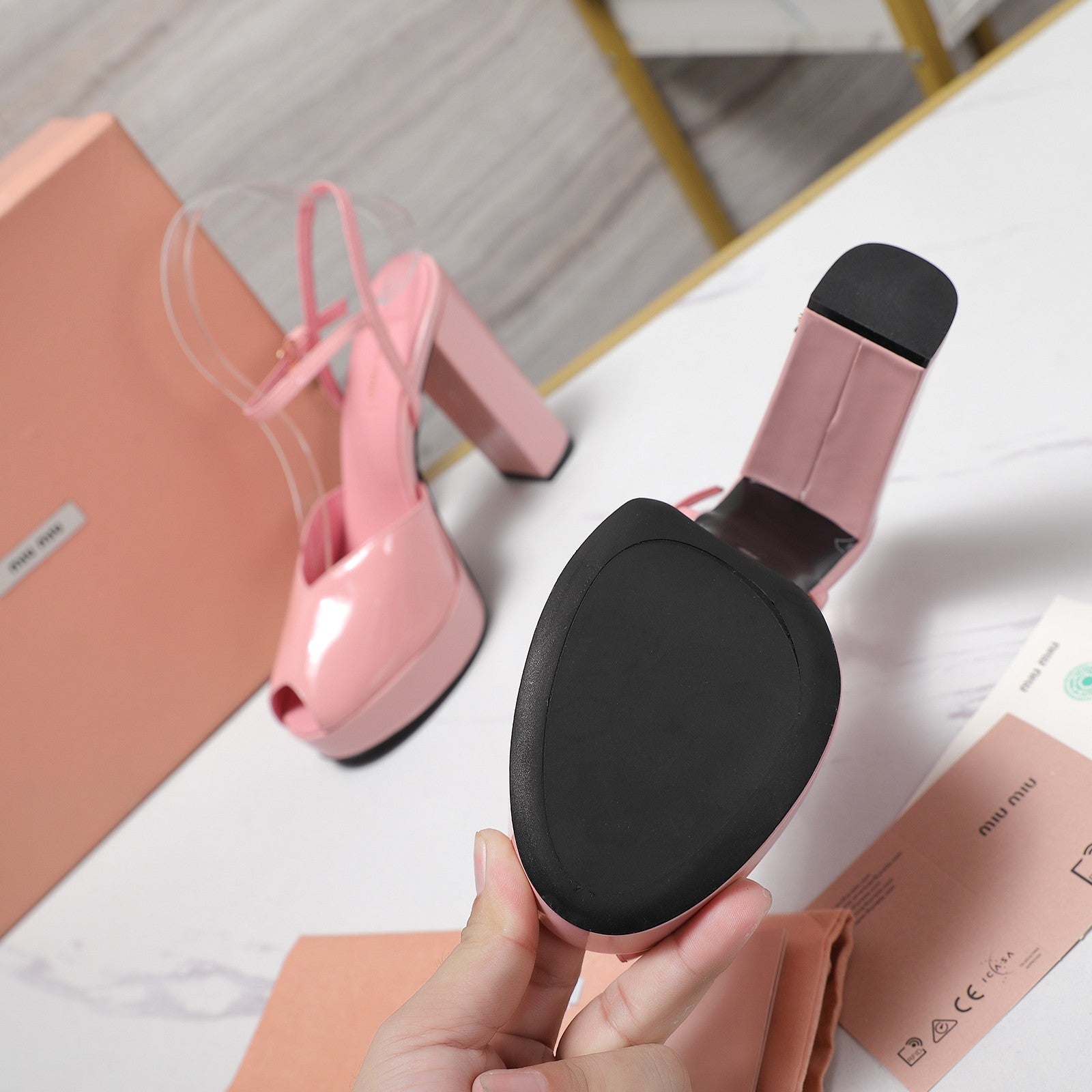 Miu Block-Heel Platform Sandals 125mm Pink Patent Leather 504175