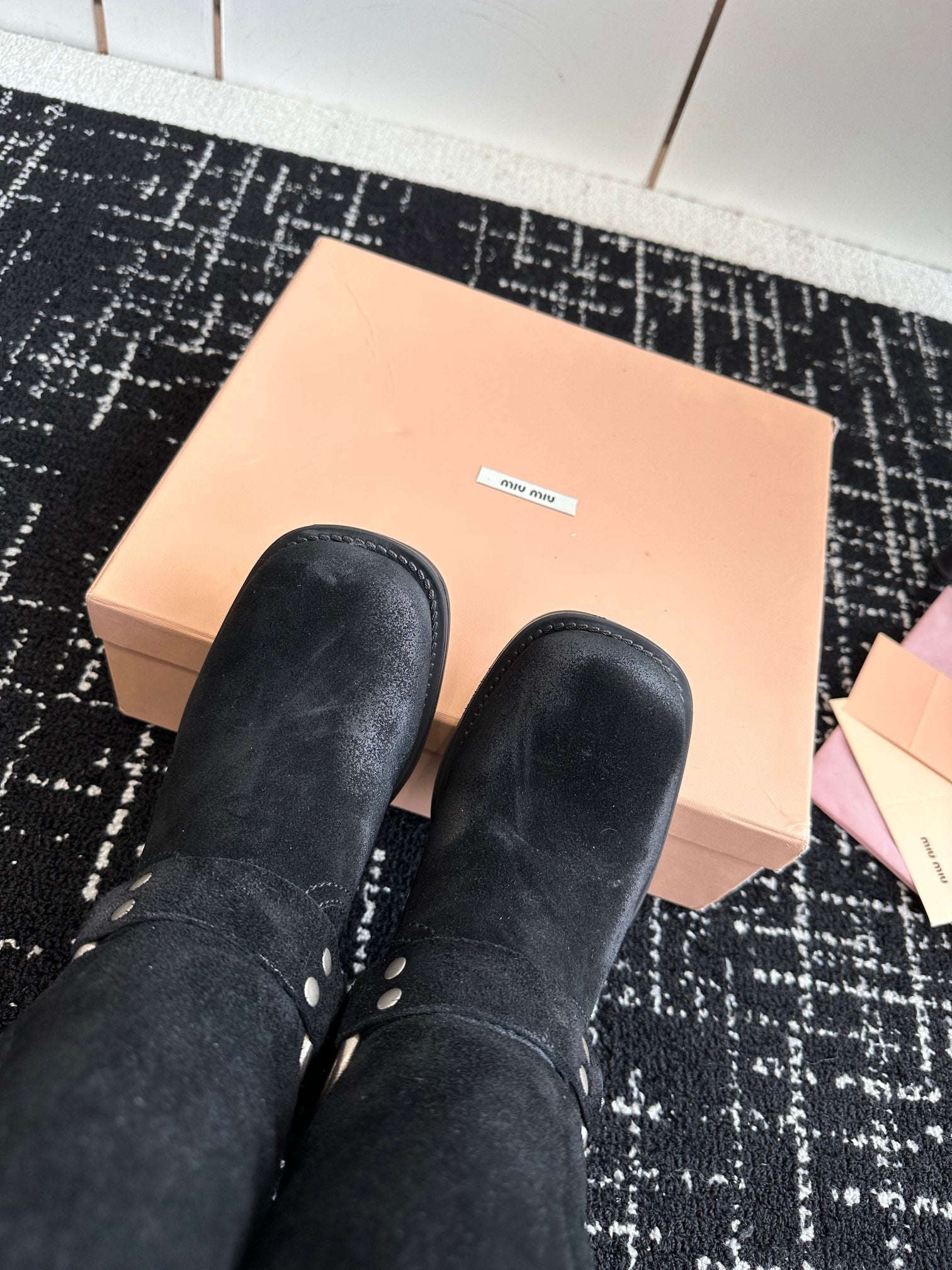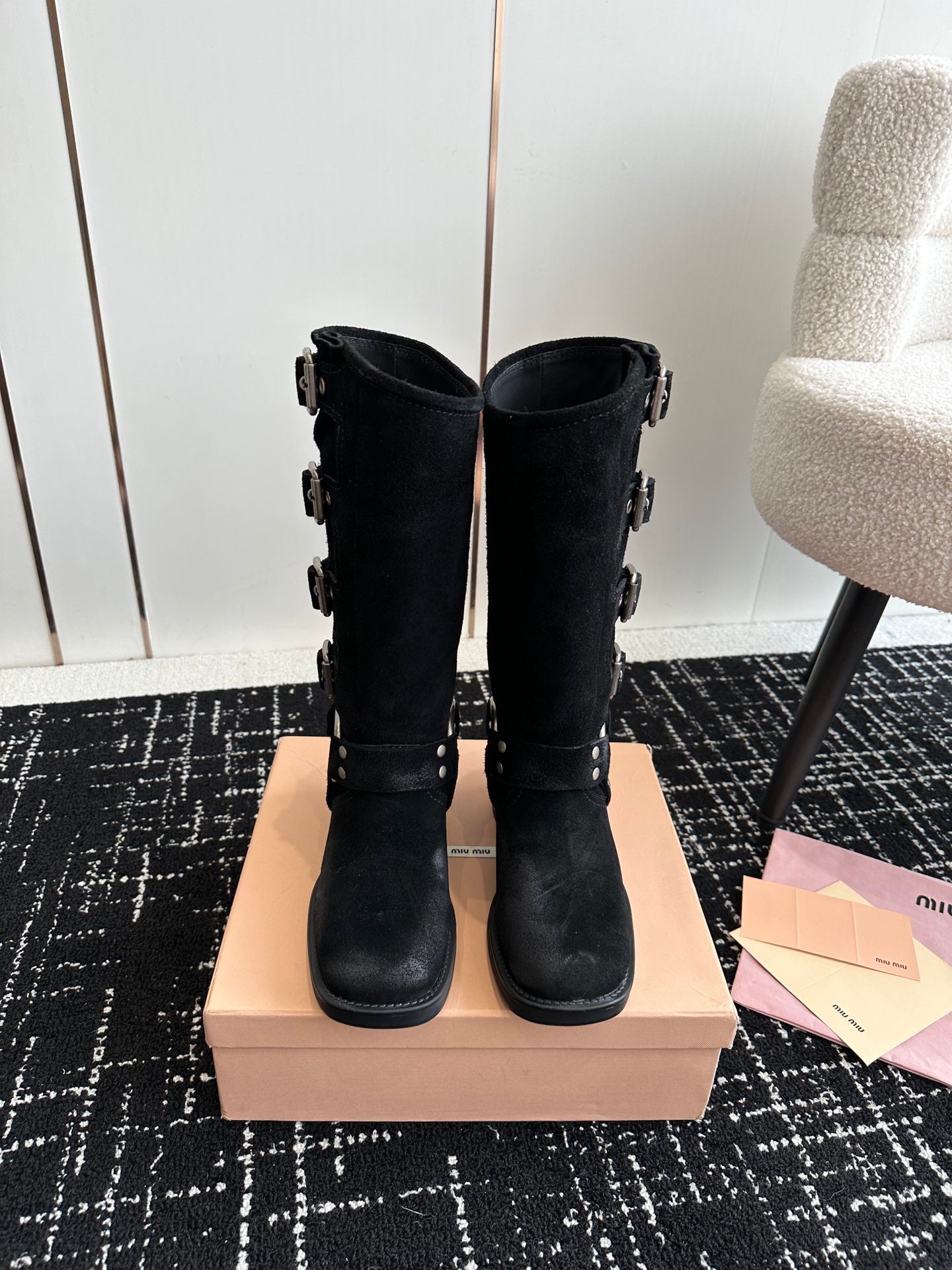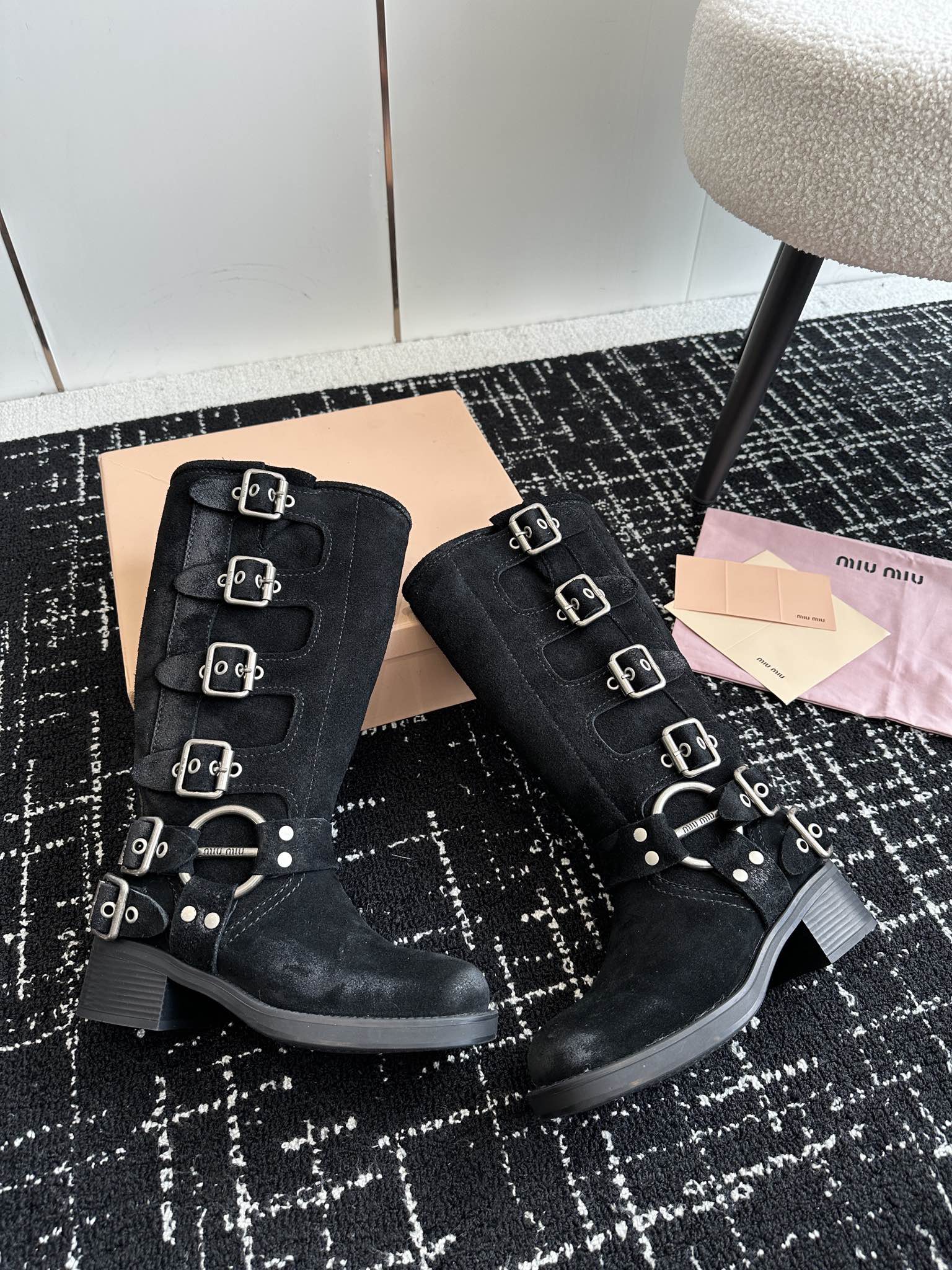 Miu Classic Runway Boots Black Suede 455905
