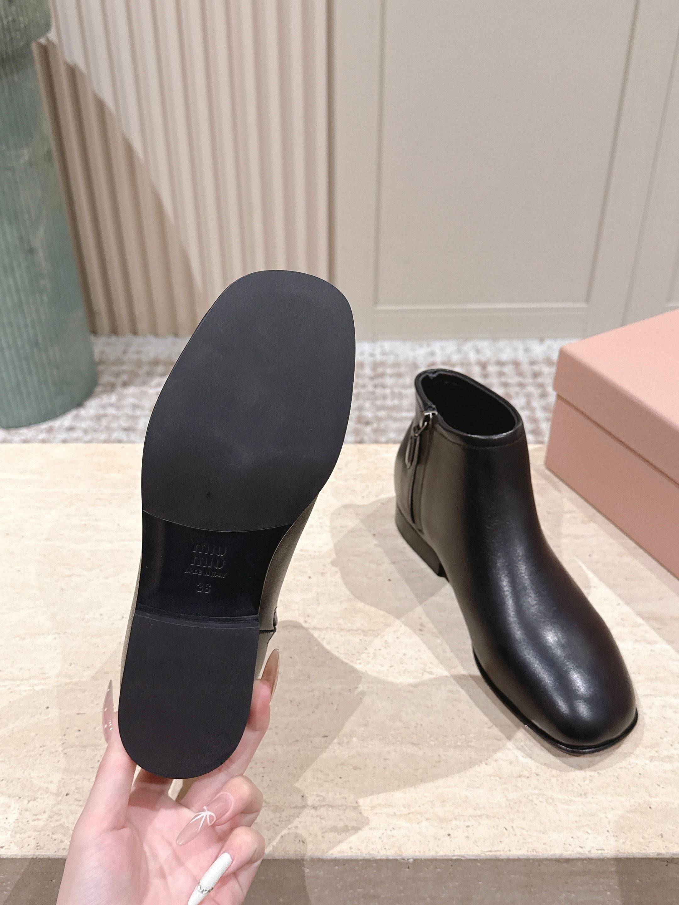Miu Miu Pair Fumé Booties Ankle Boots Dark Brown Calf Leather 533040