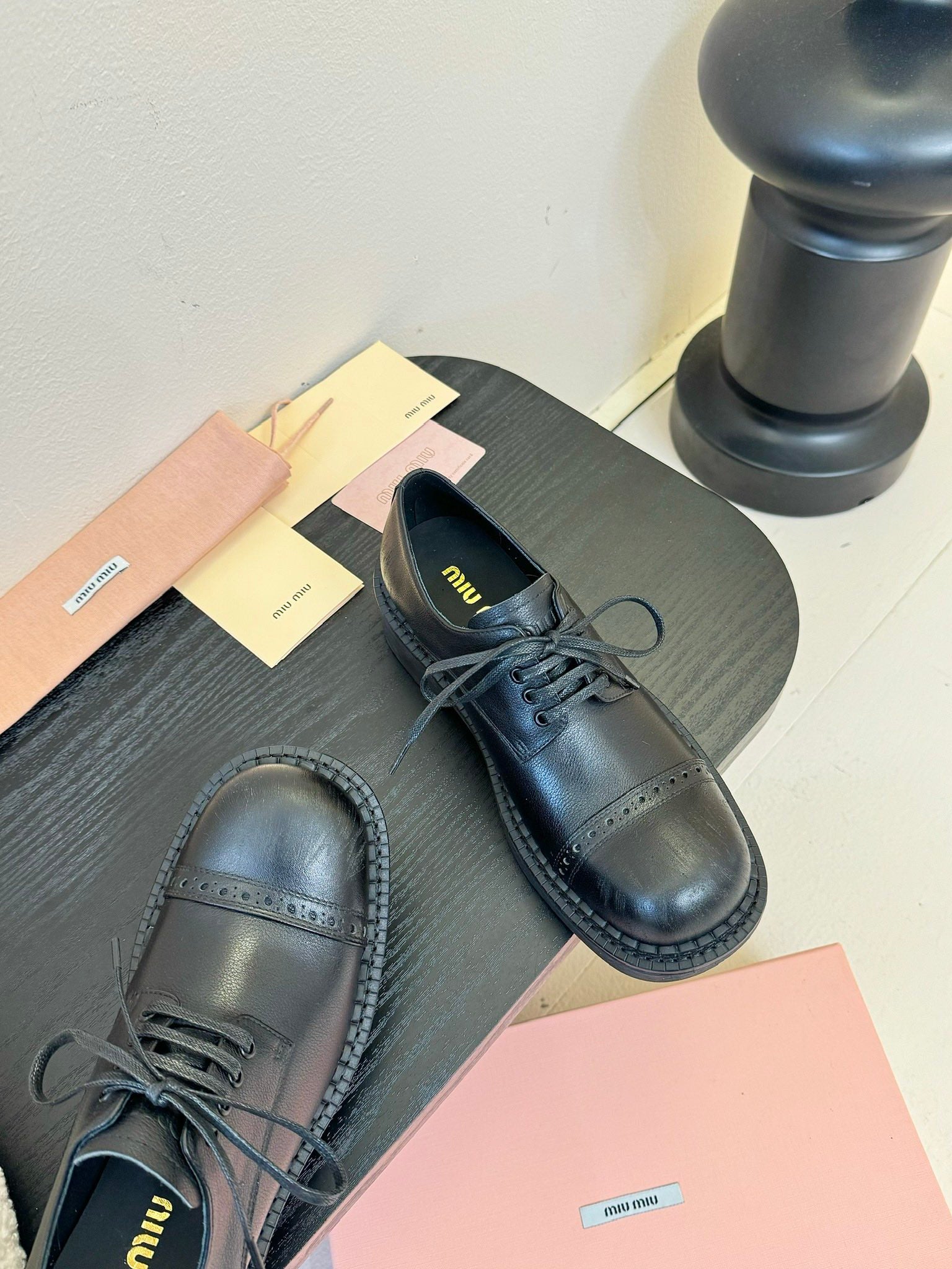 Miu 25C Chunky Oxfords Black Leathery 235811