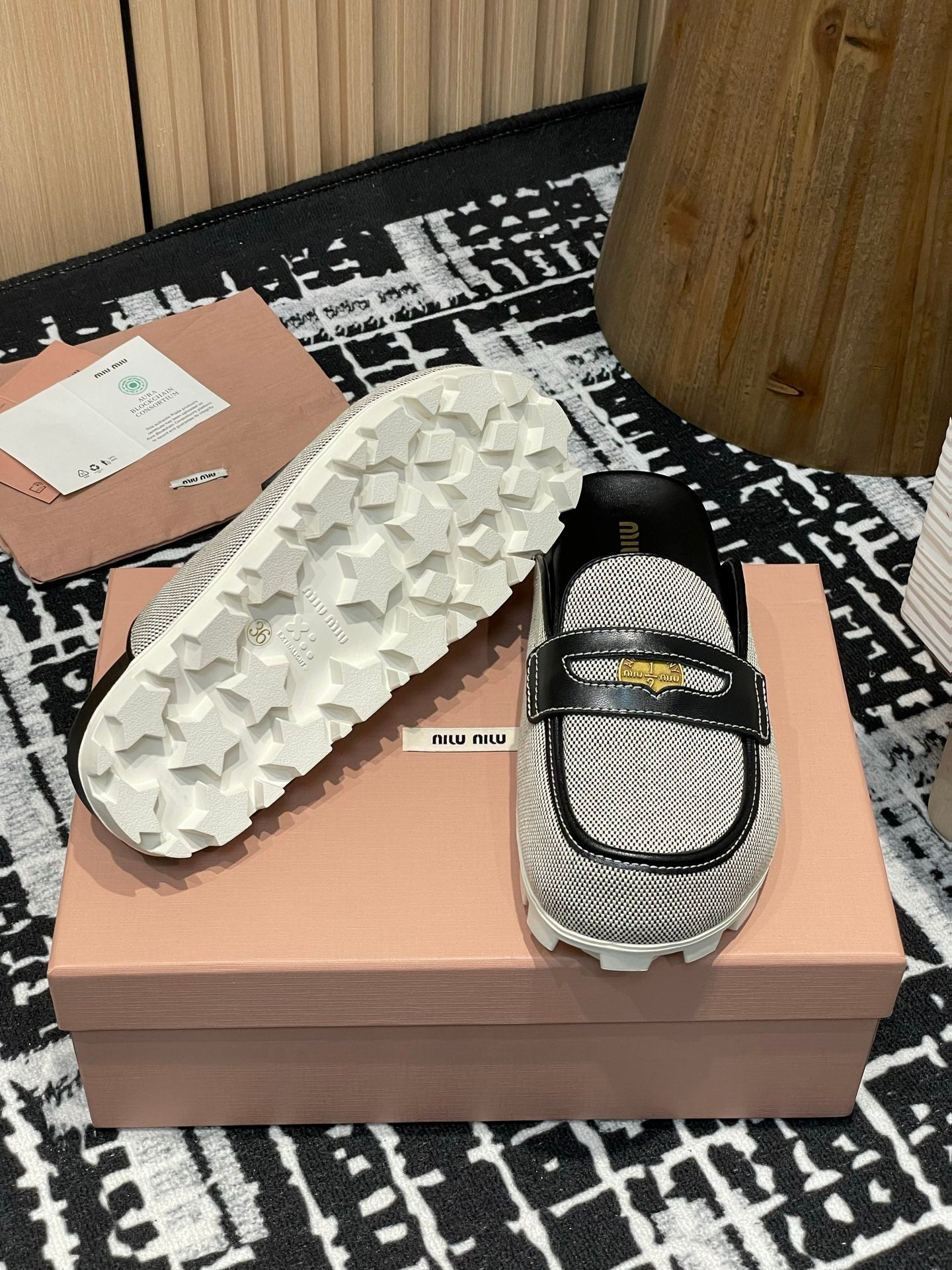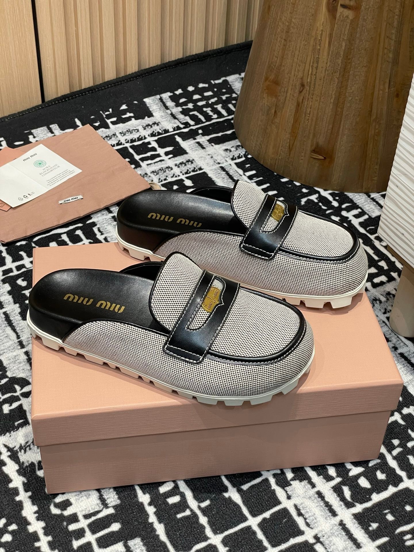 Miu 25S Beige and Black Canvas and leather Mules 227137