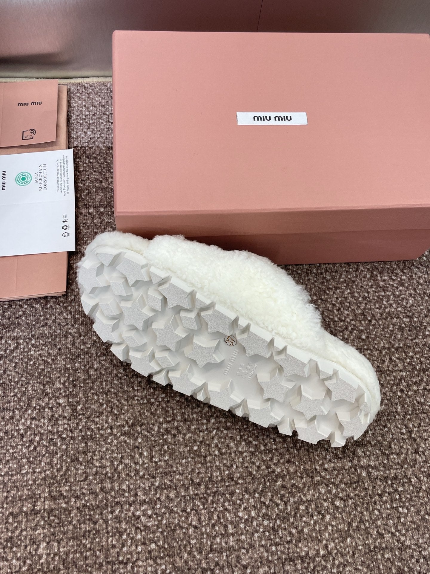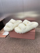 Miu Velcro Slippers White Lambswool 508825