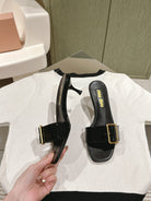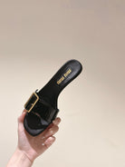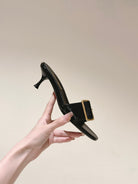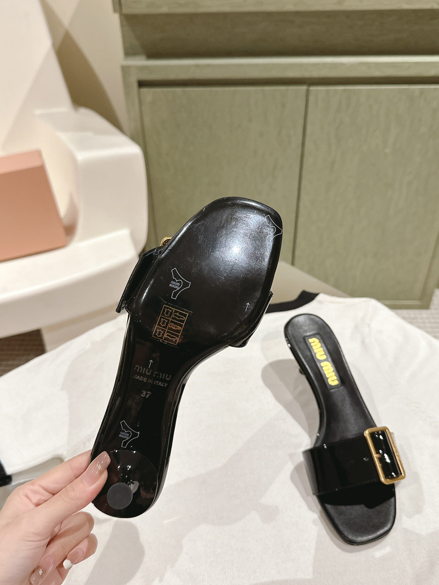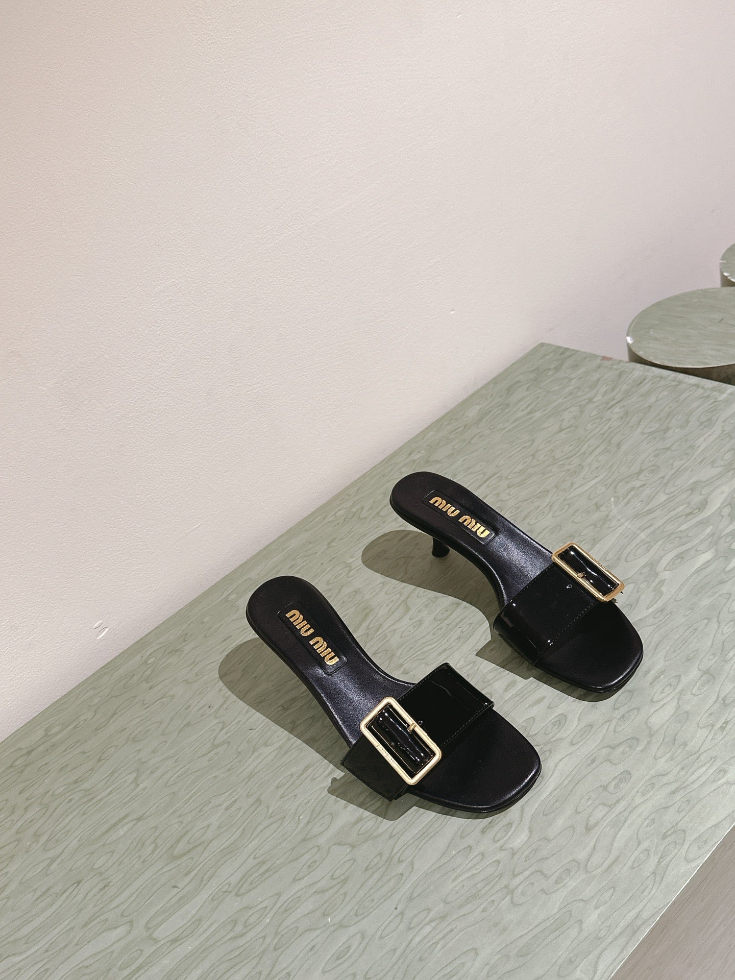 Miu x Balanc Studded Buckle Elegant Mules 45mm Black Patent Leather 445870