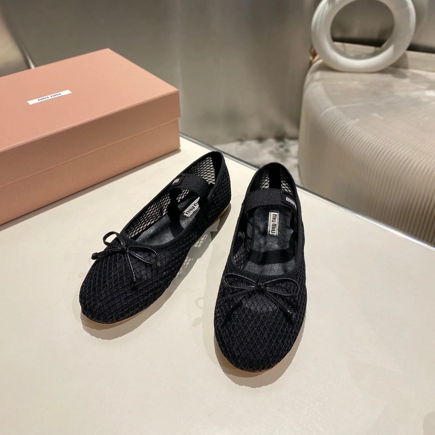 MARY JANE FLAT IN BLACK MESH