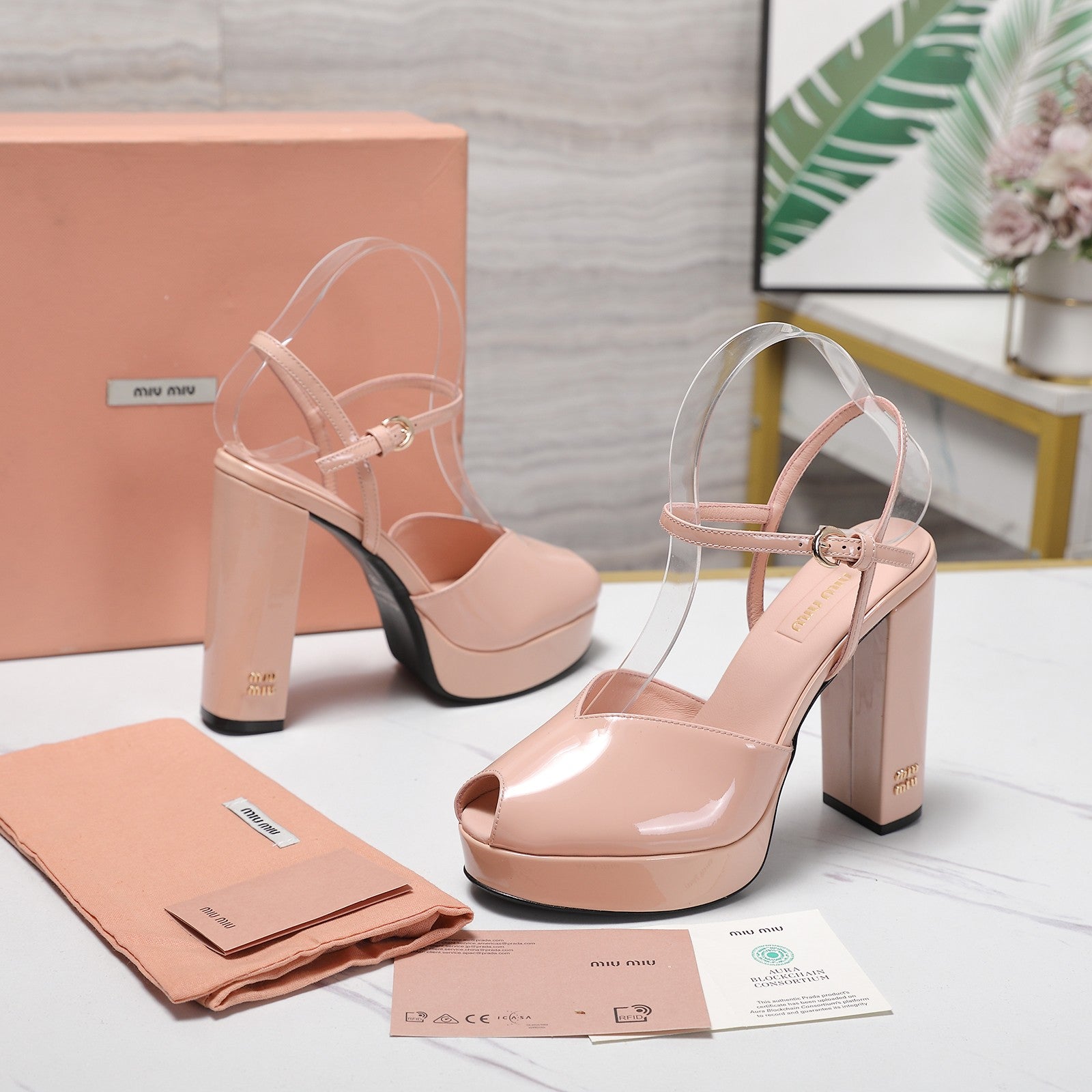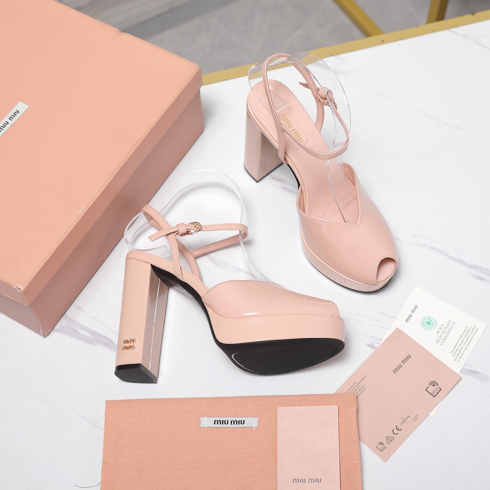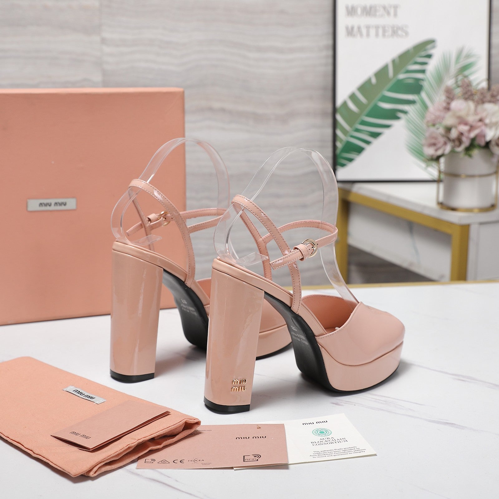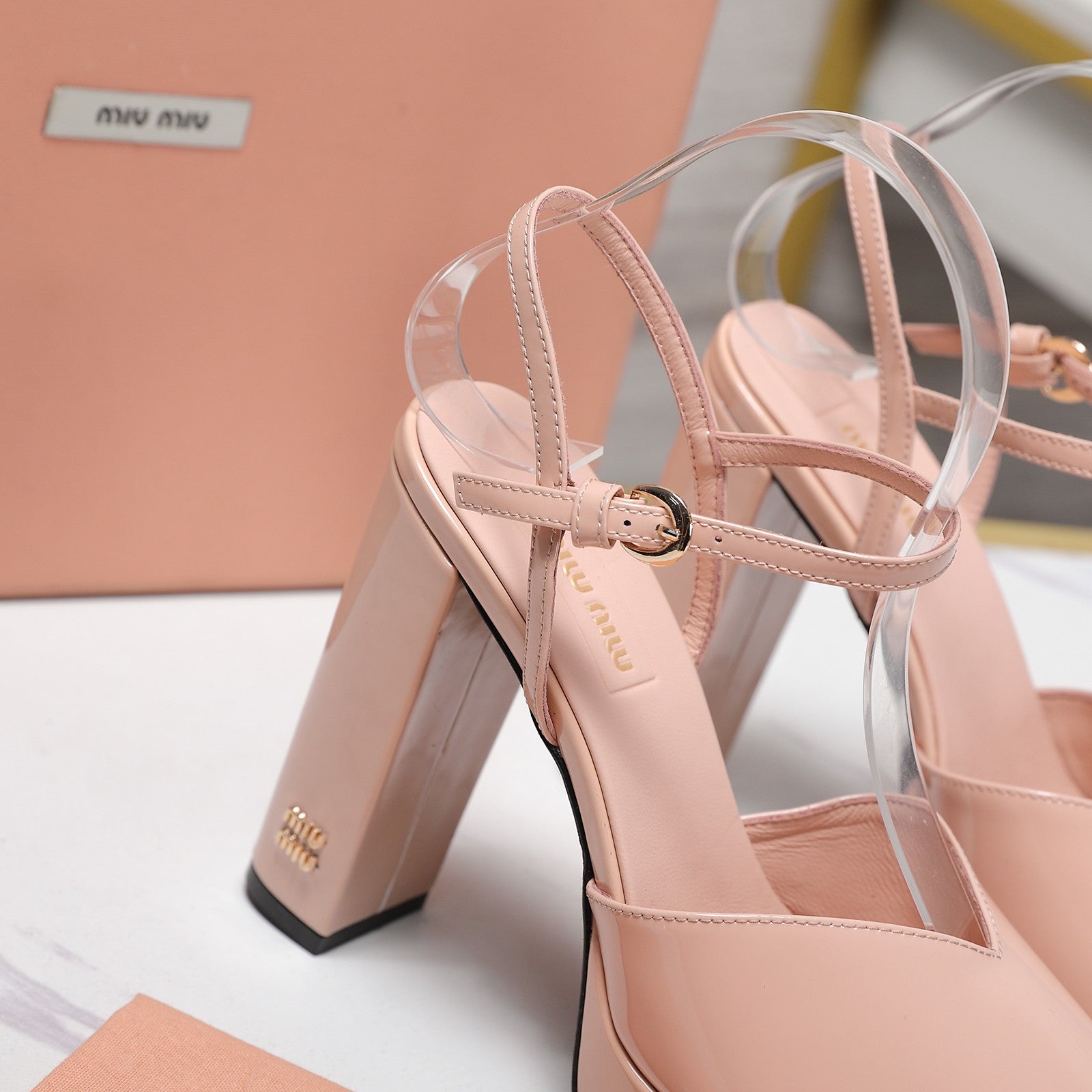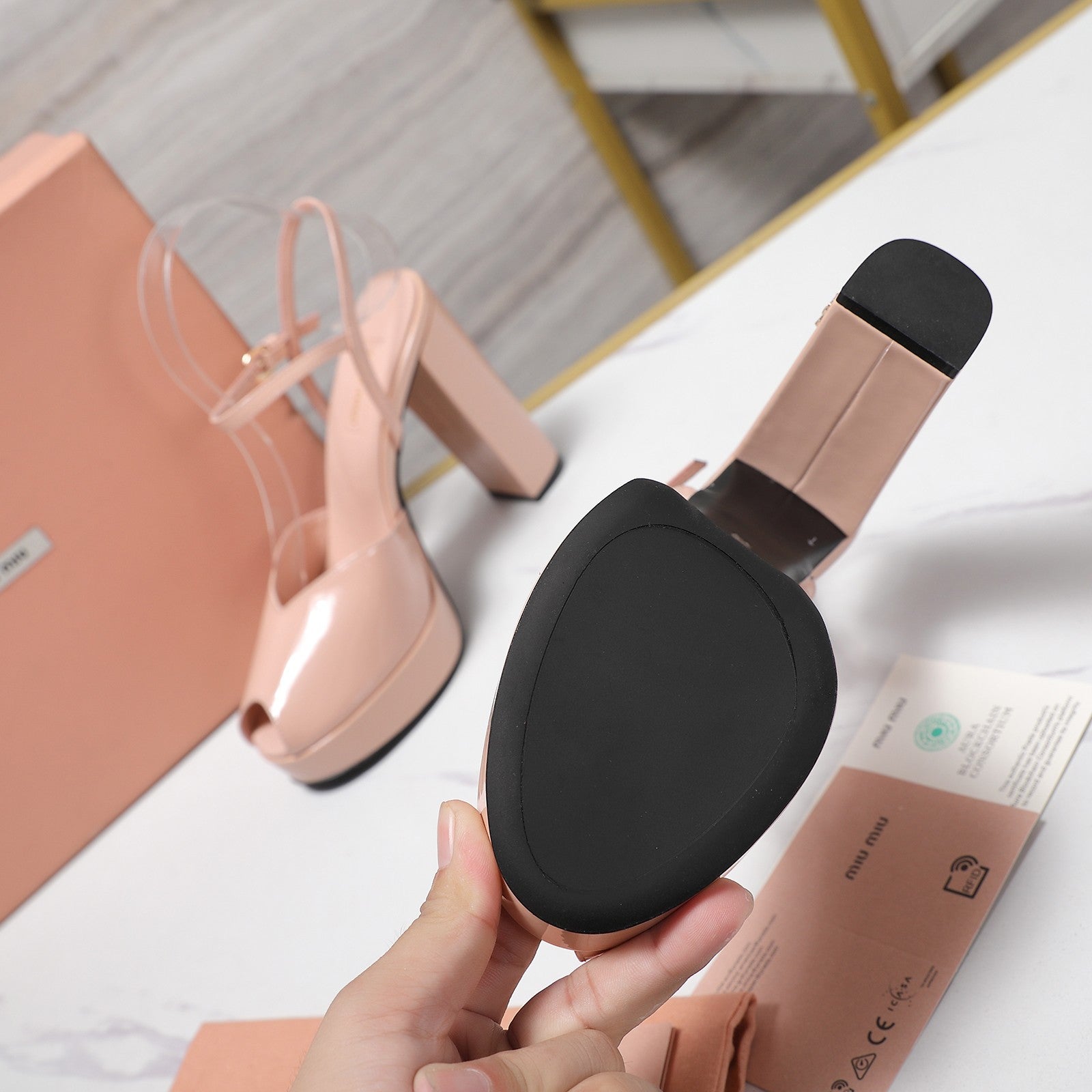 Miu Block-Heel Platform Sandals 125mm Muted Pink Patent Leather 504177