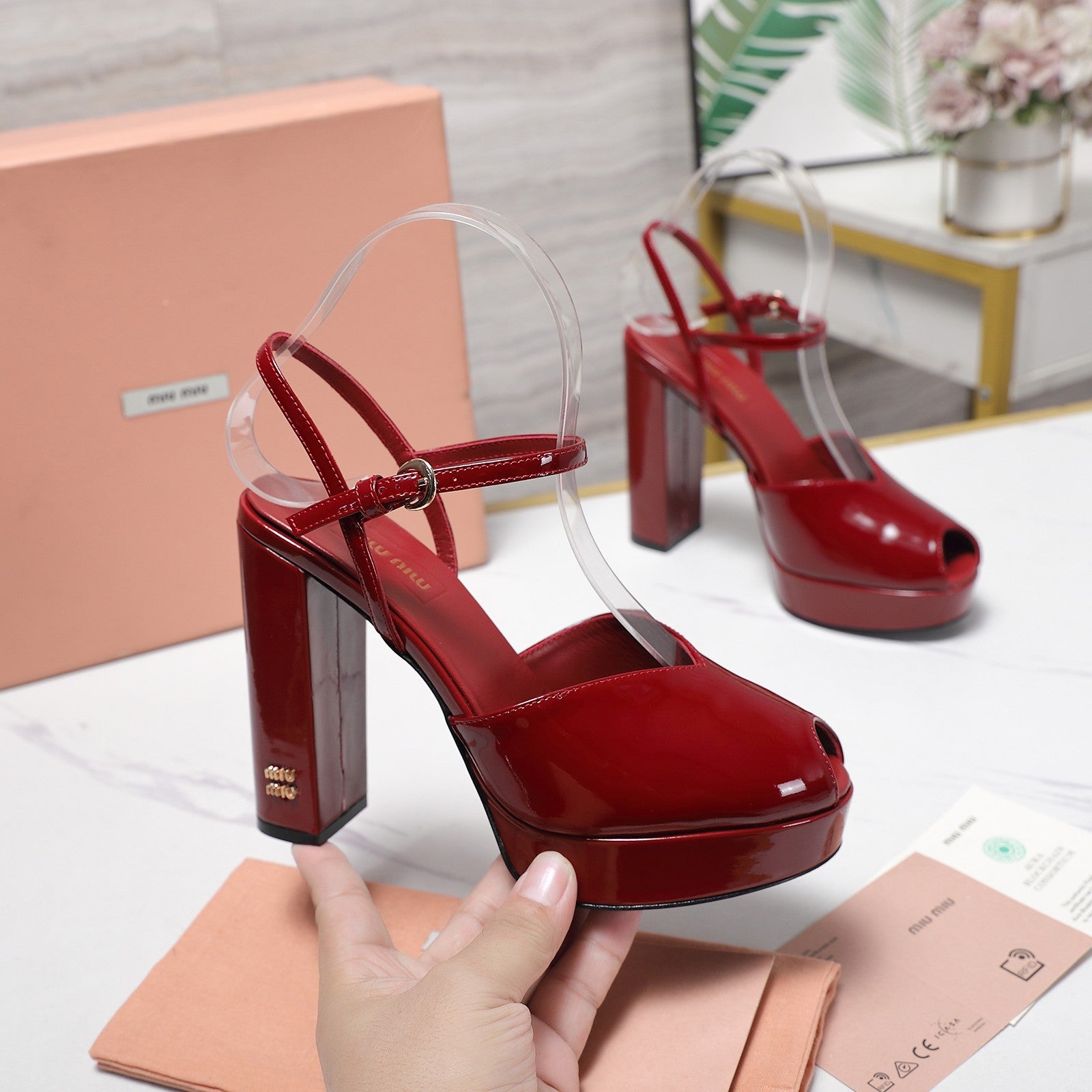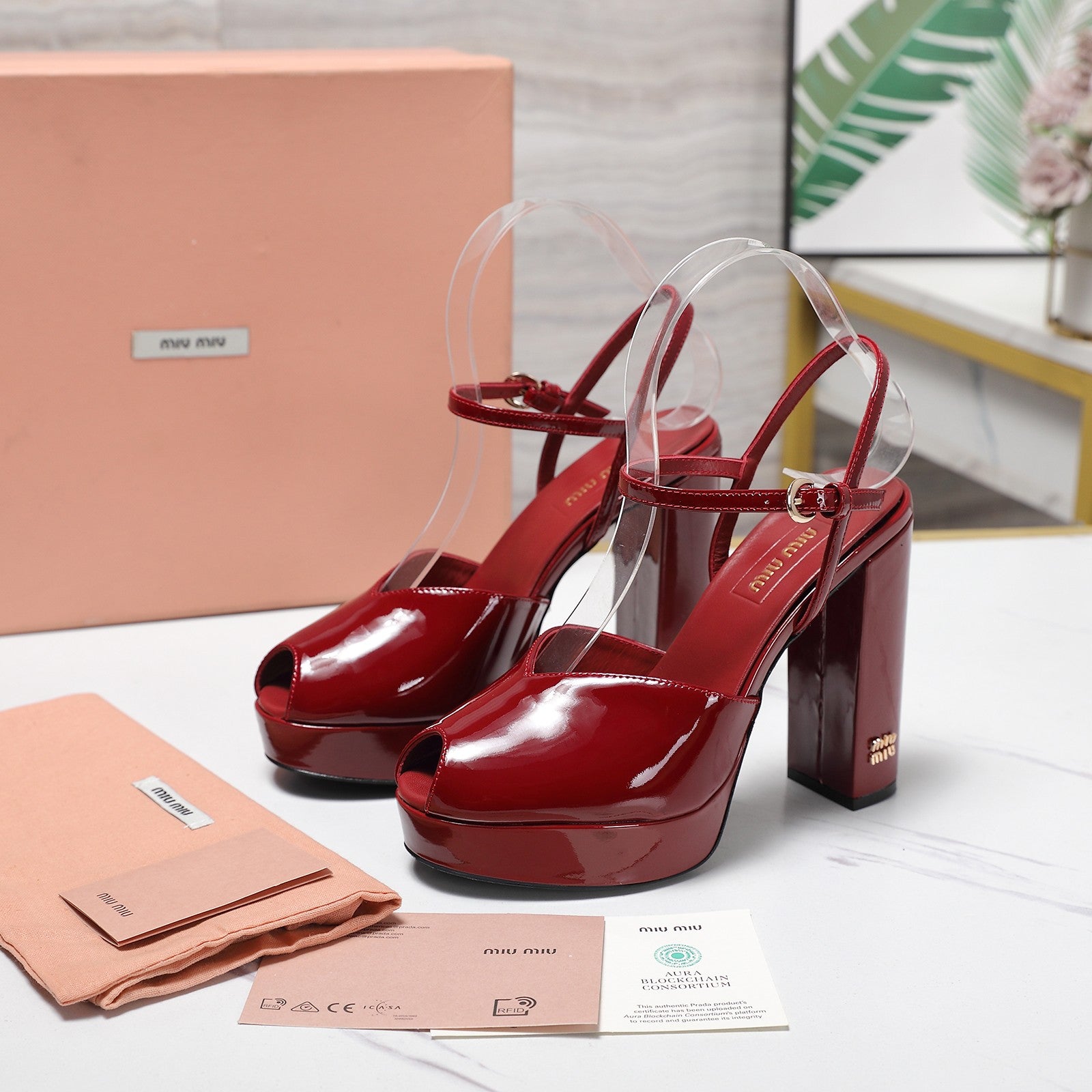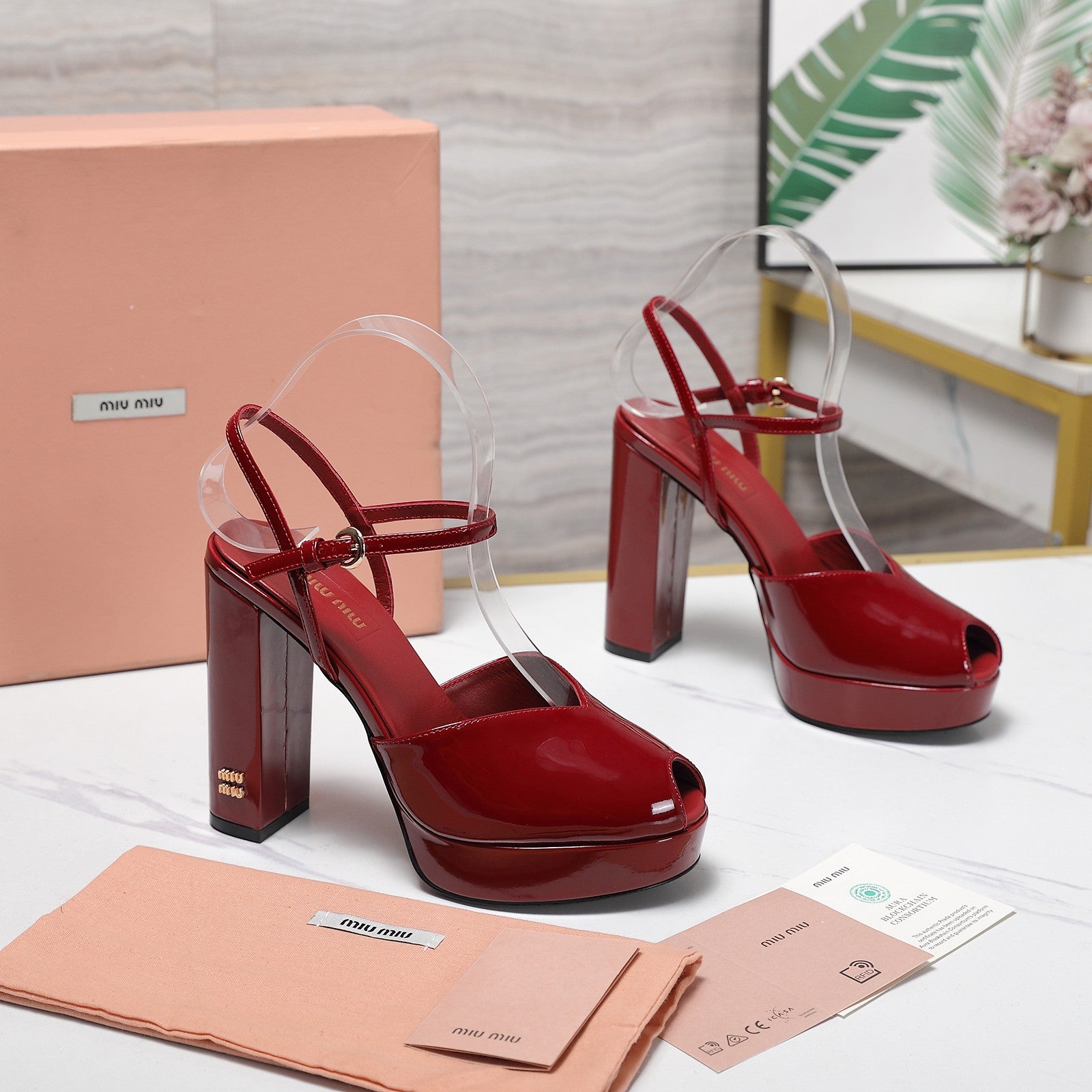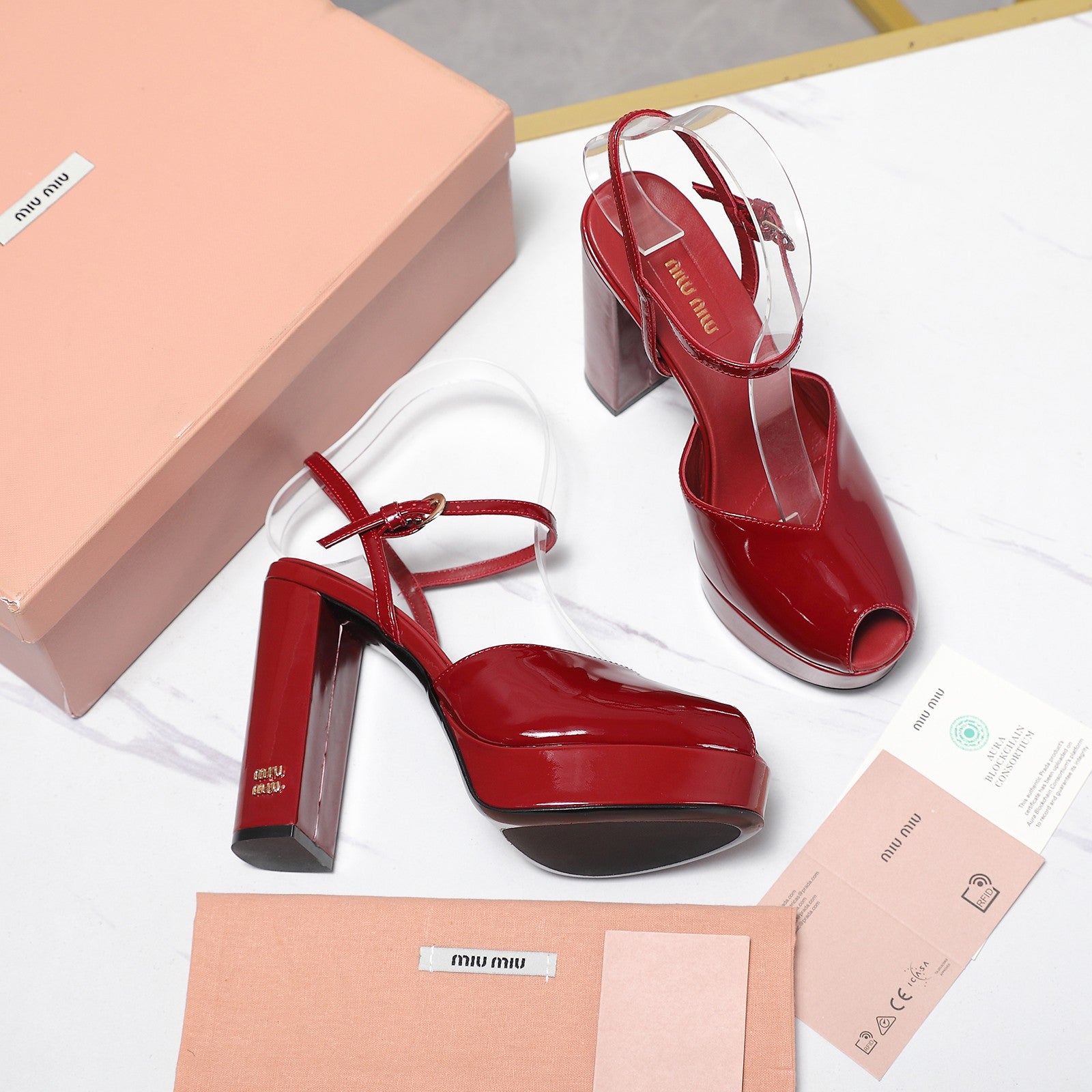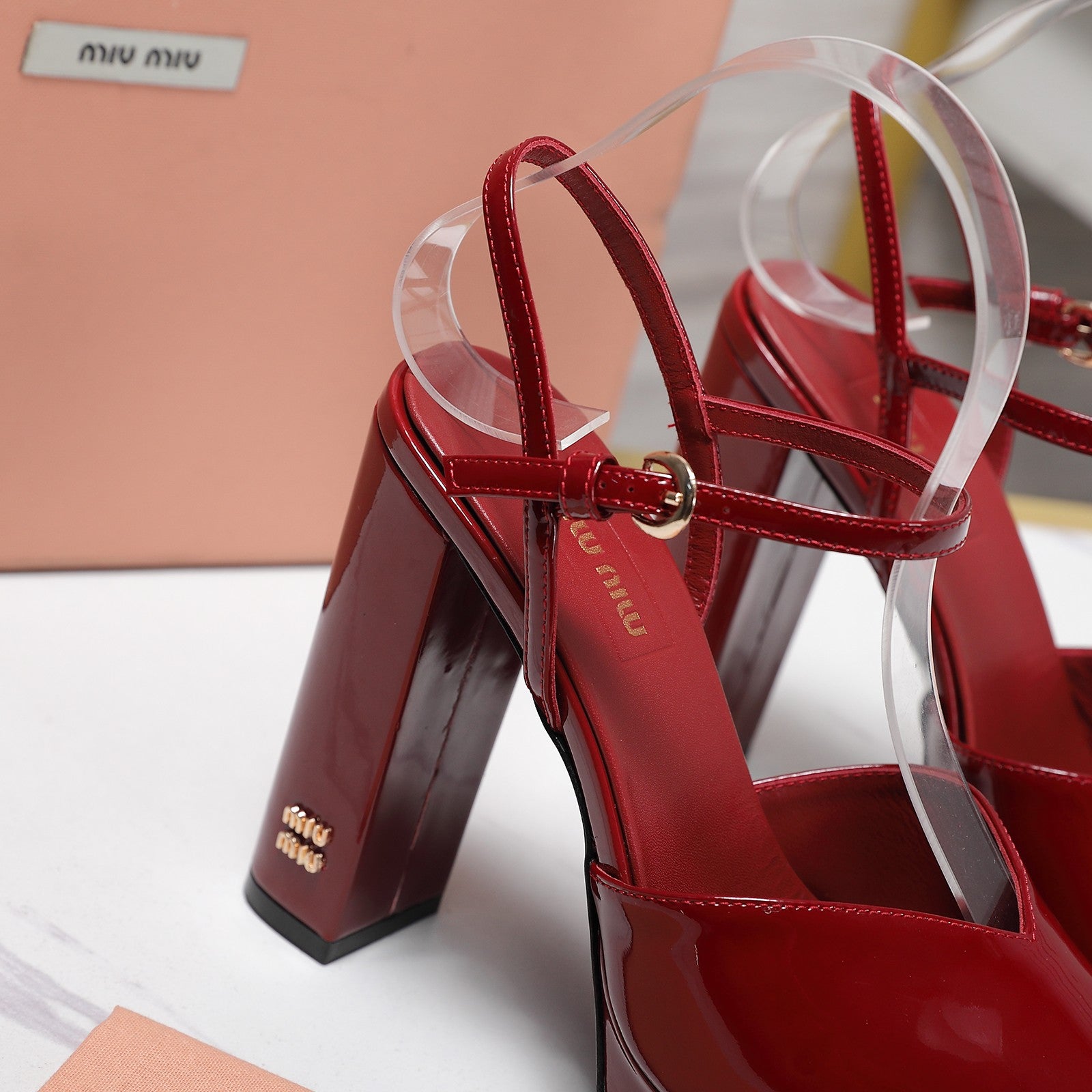 Miu Block-Heel Platform Sandals 125mm Red Patent Leather 504178