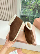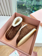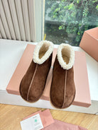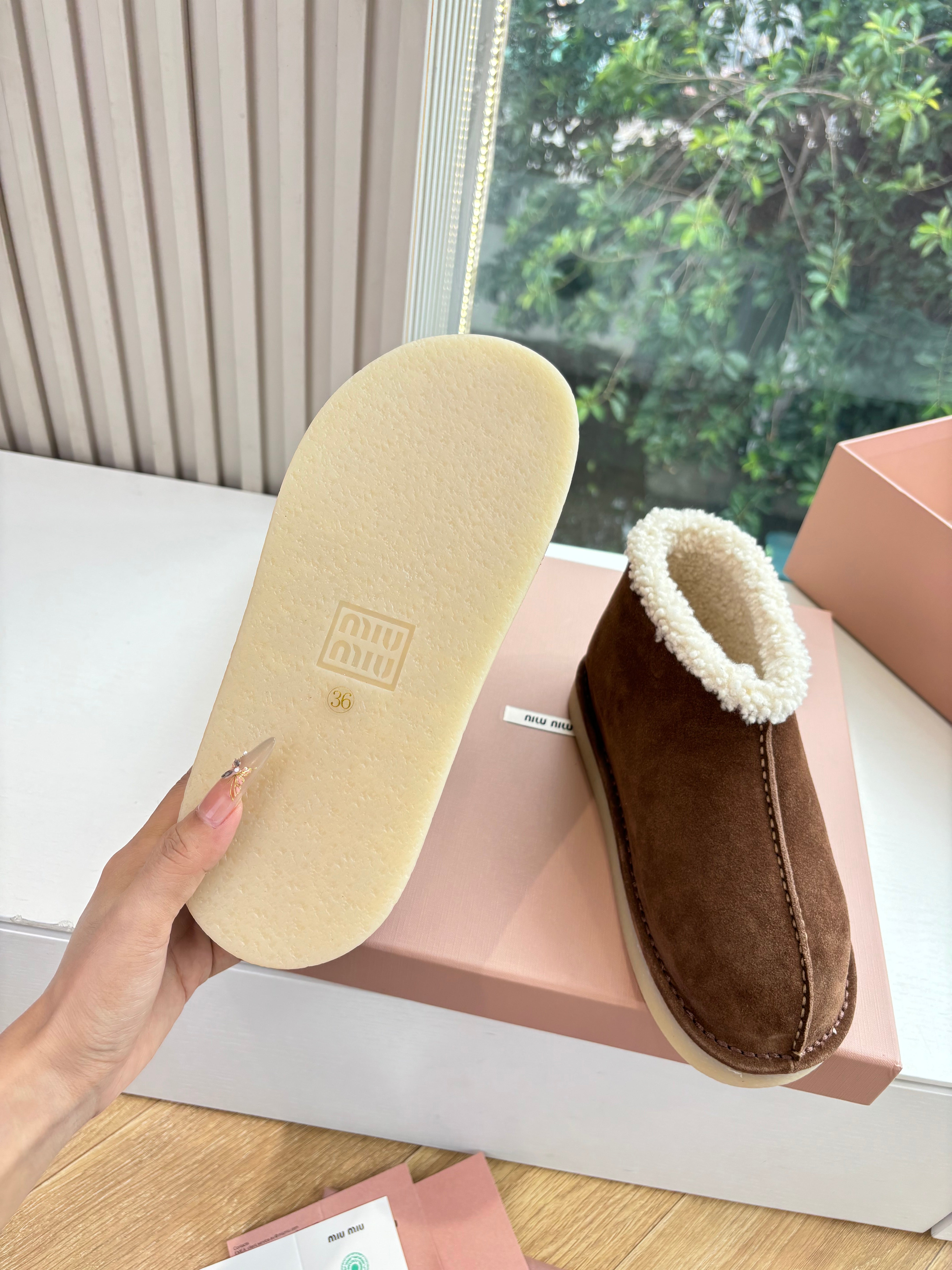 Miu FW25 Snow Boots Brown White Wool Suede 506649