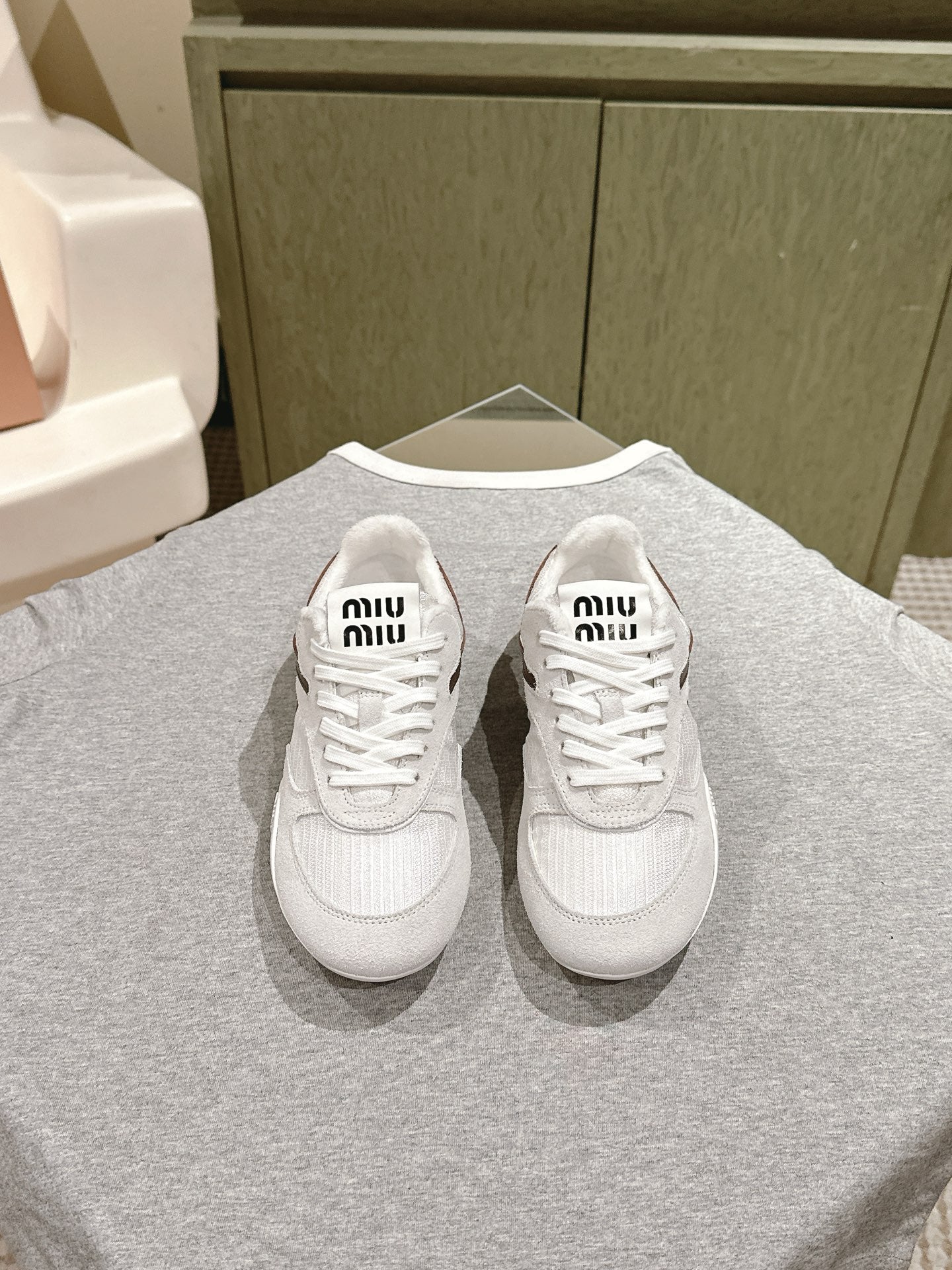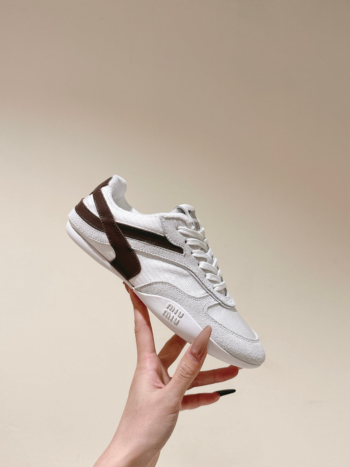 Miu Gymnasium Sneakers Brown White Technical Fabric & Suede 445725