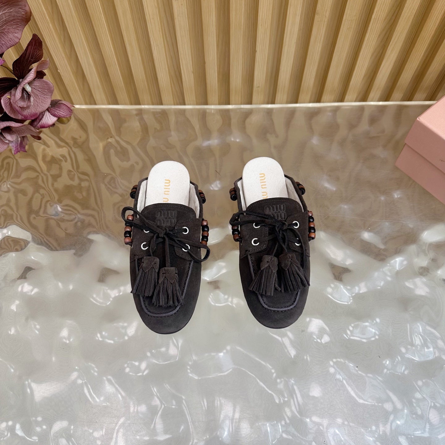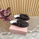 Miu Laces Eyelet Flat Half Slipper Deep Reddish Brown Sheepskin 498165