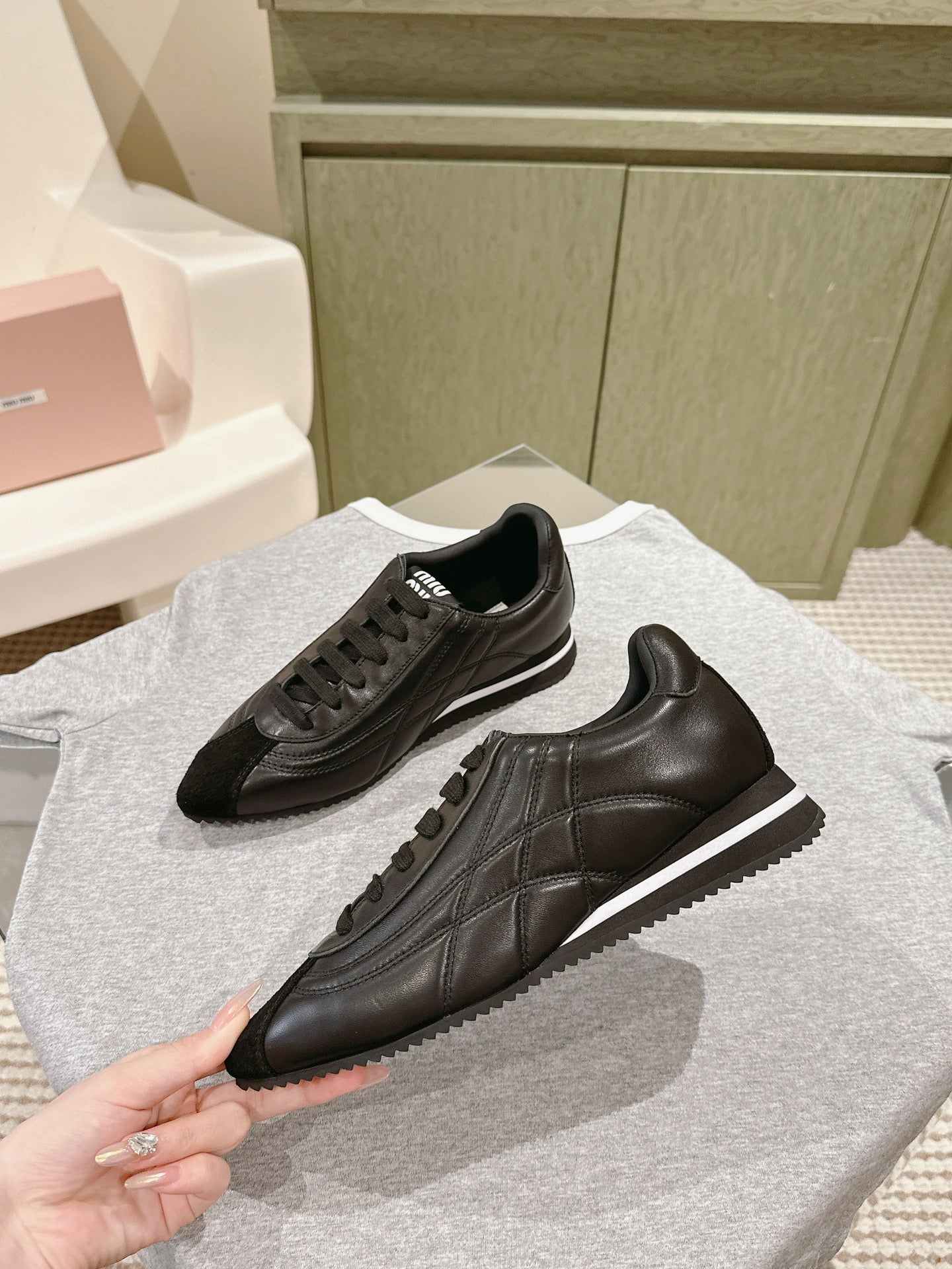 Miu Low-top Pointed Toe Sneakers Black Cowhide Suede 445540
