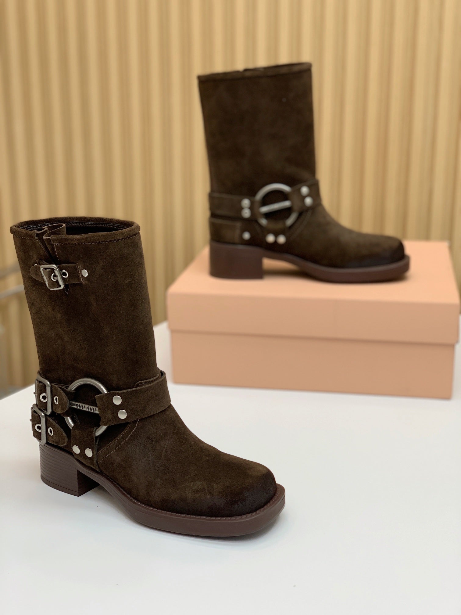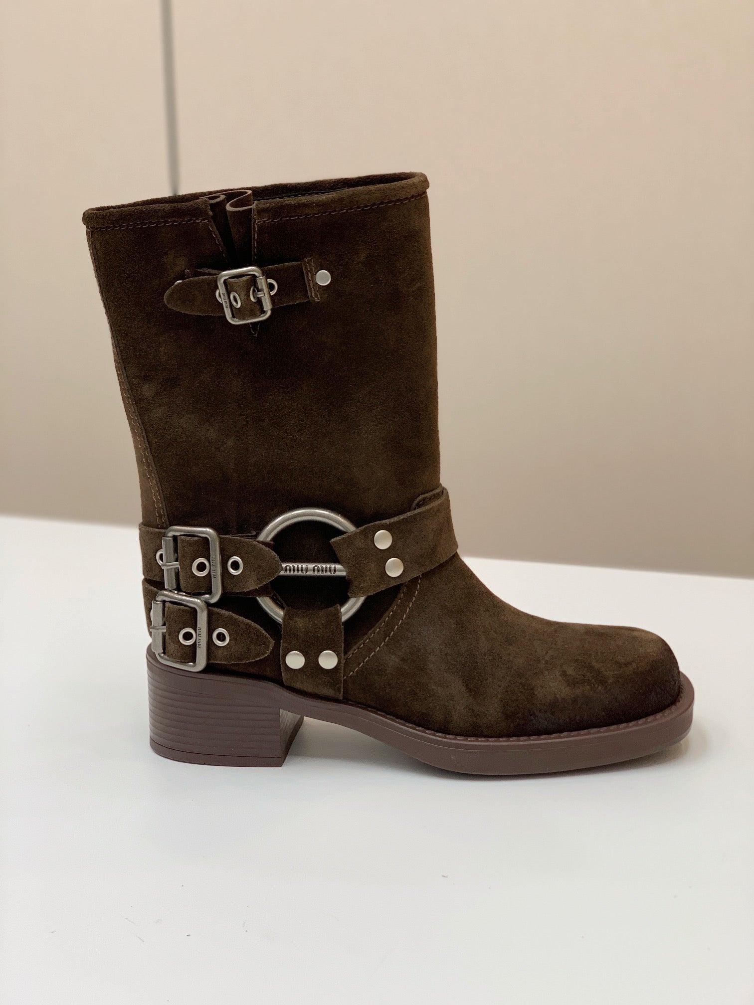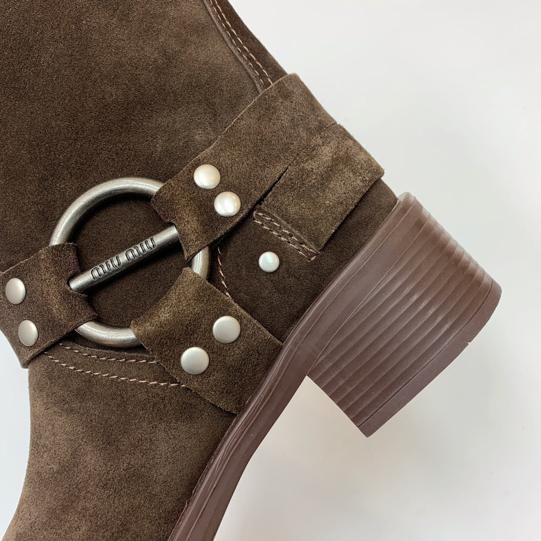 Miu Miu Biker Mid-Length Boots Brown Suede 535197