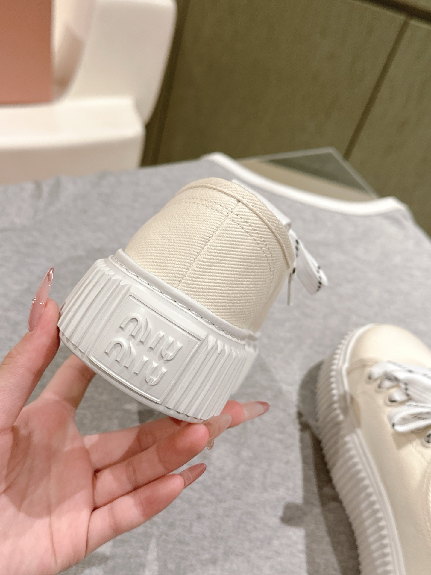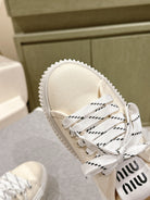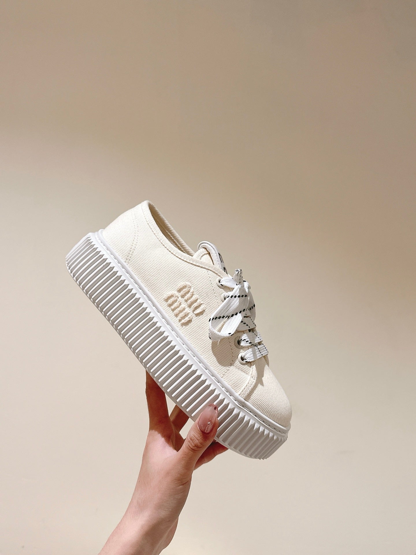 Miu Miu Biscuit Shoes Chunky Sneakers Cream Denim Canvas 532875