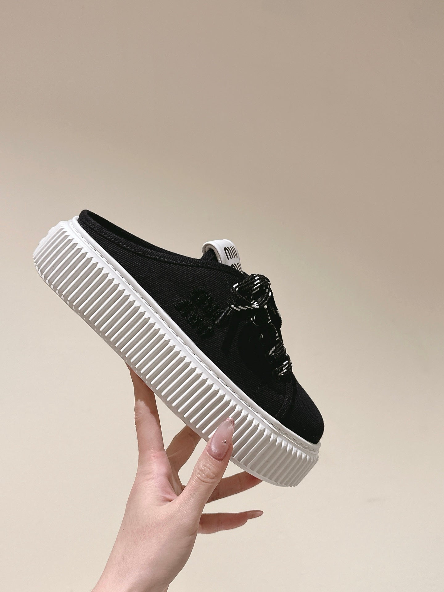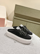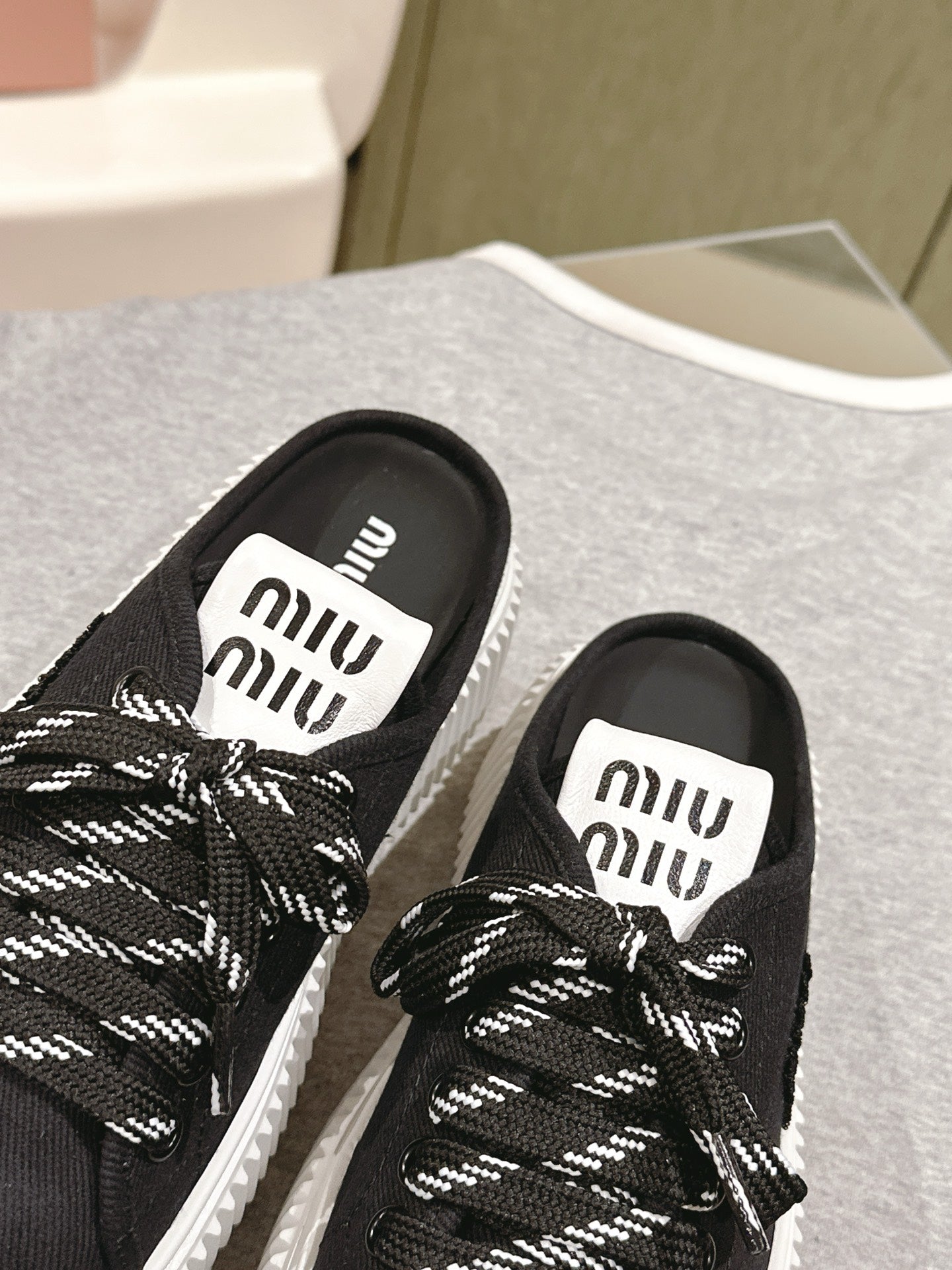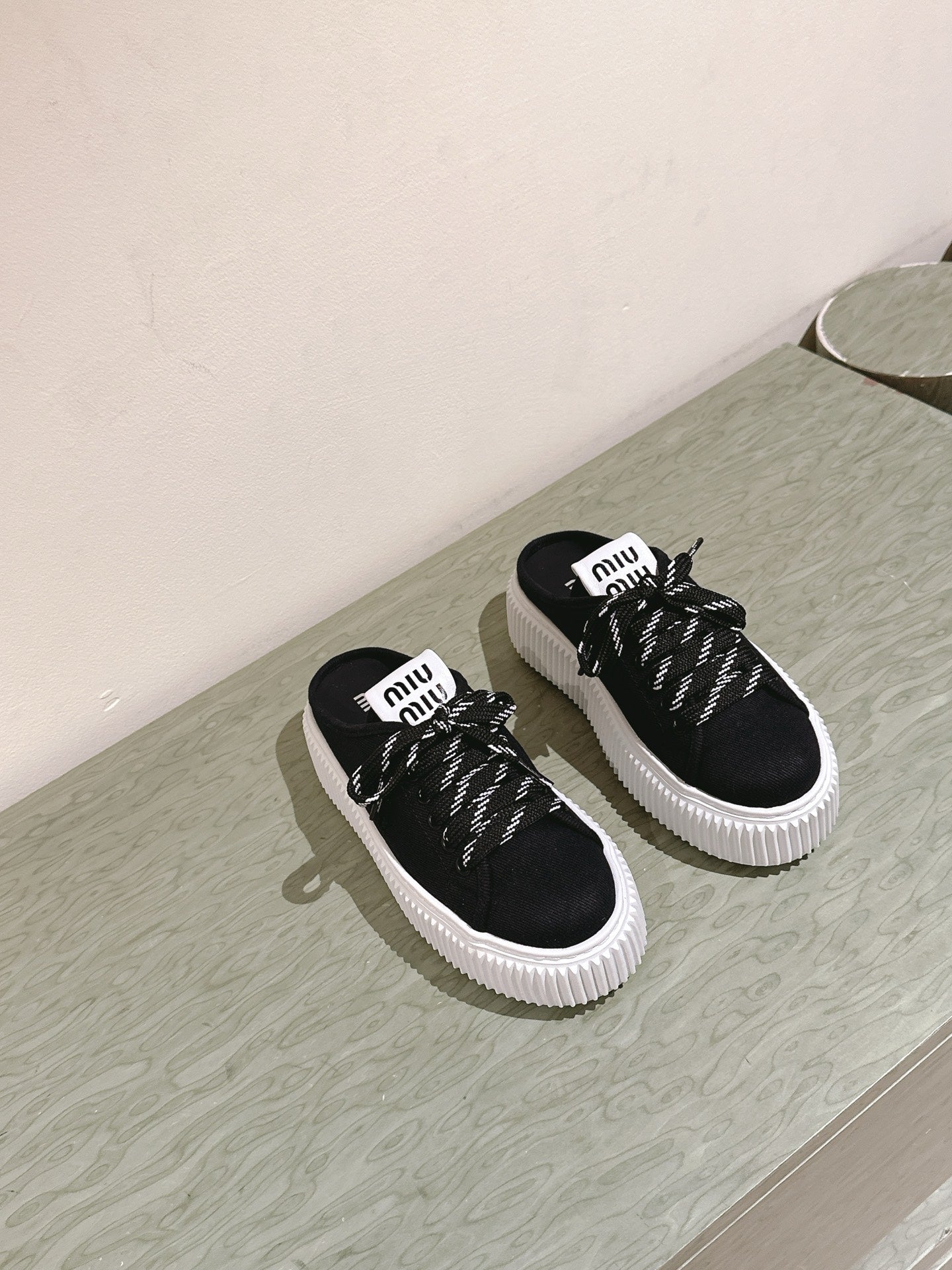 Miu Miu Biscuit Shoes Platform Mules Black Denim Canvas 532872