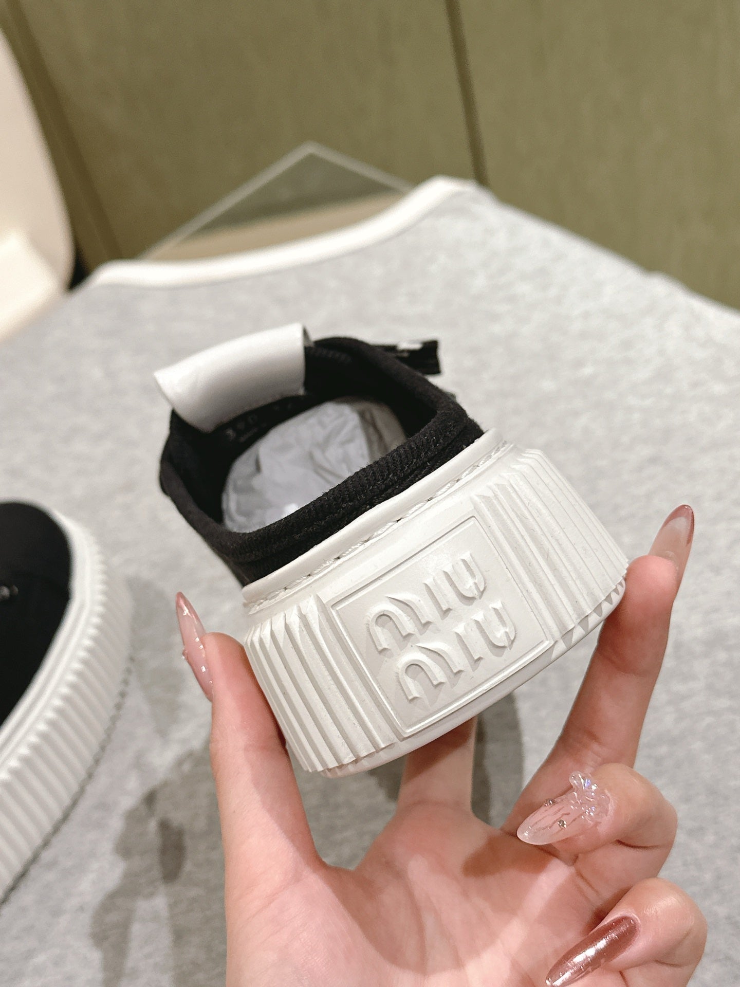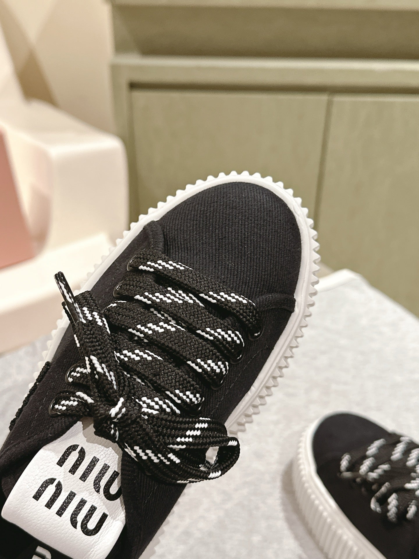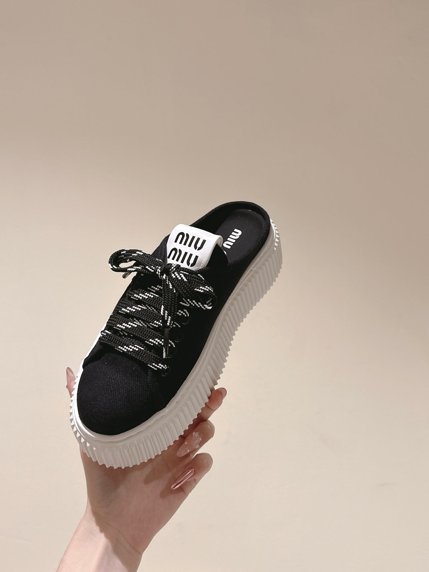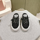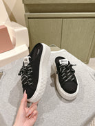 Miu Miu Biscuit Shoes Platform Mules Black Denim Canvas 532872