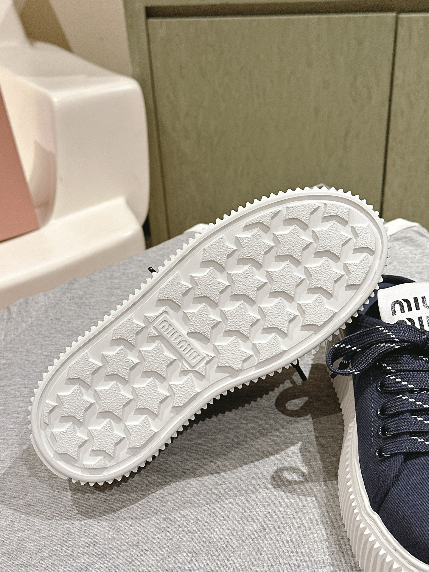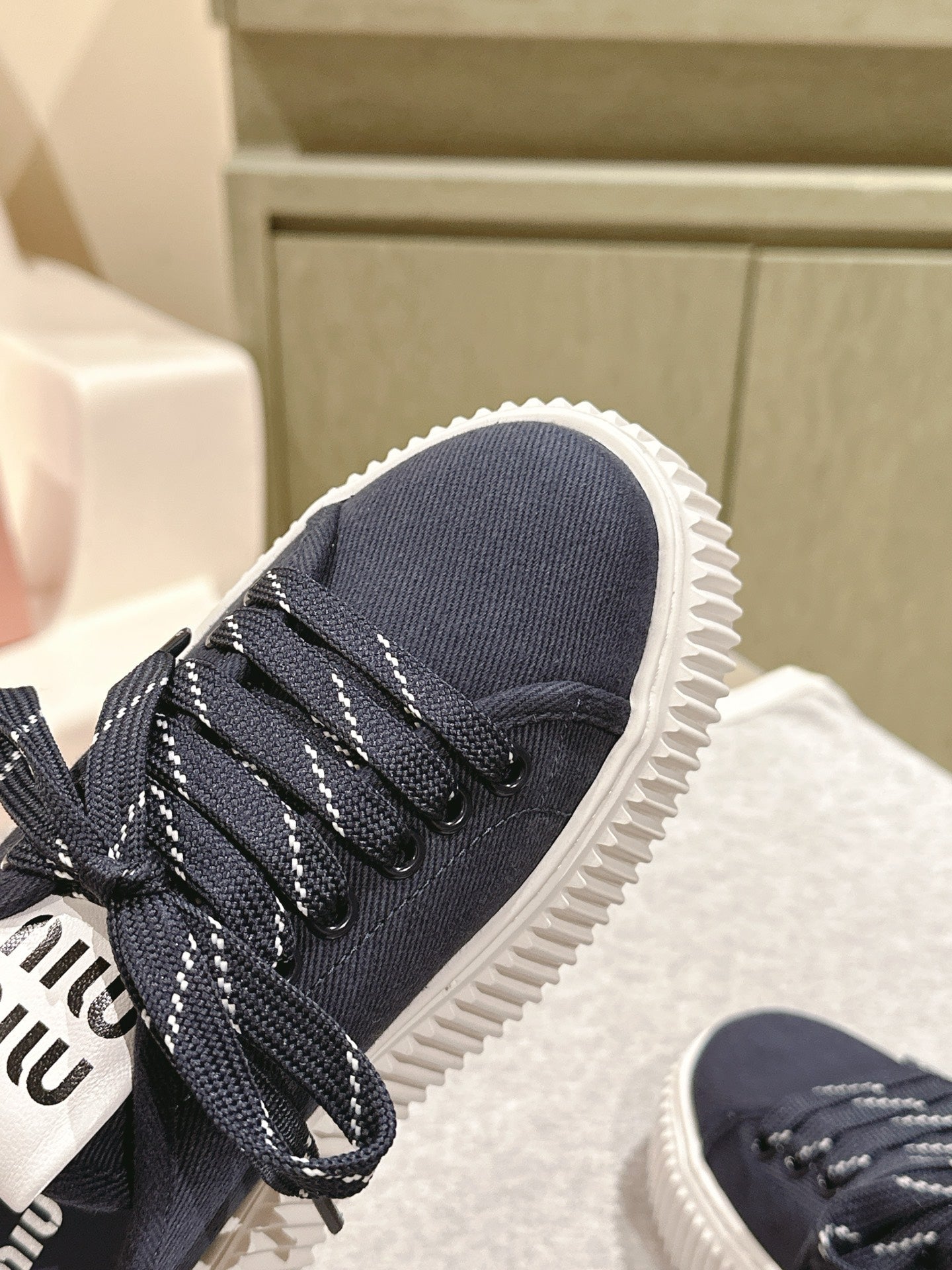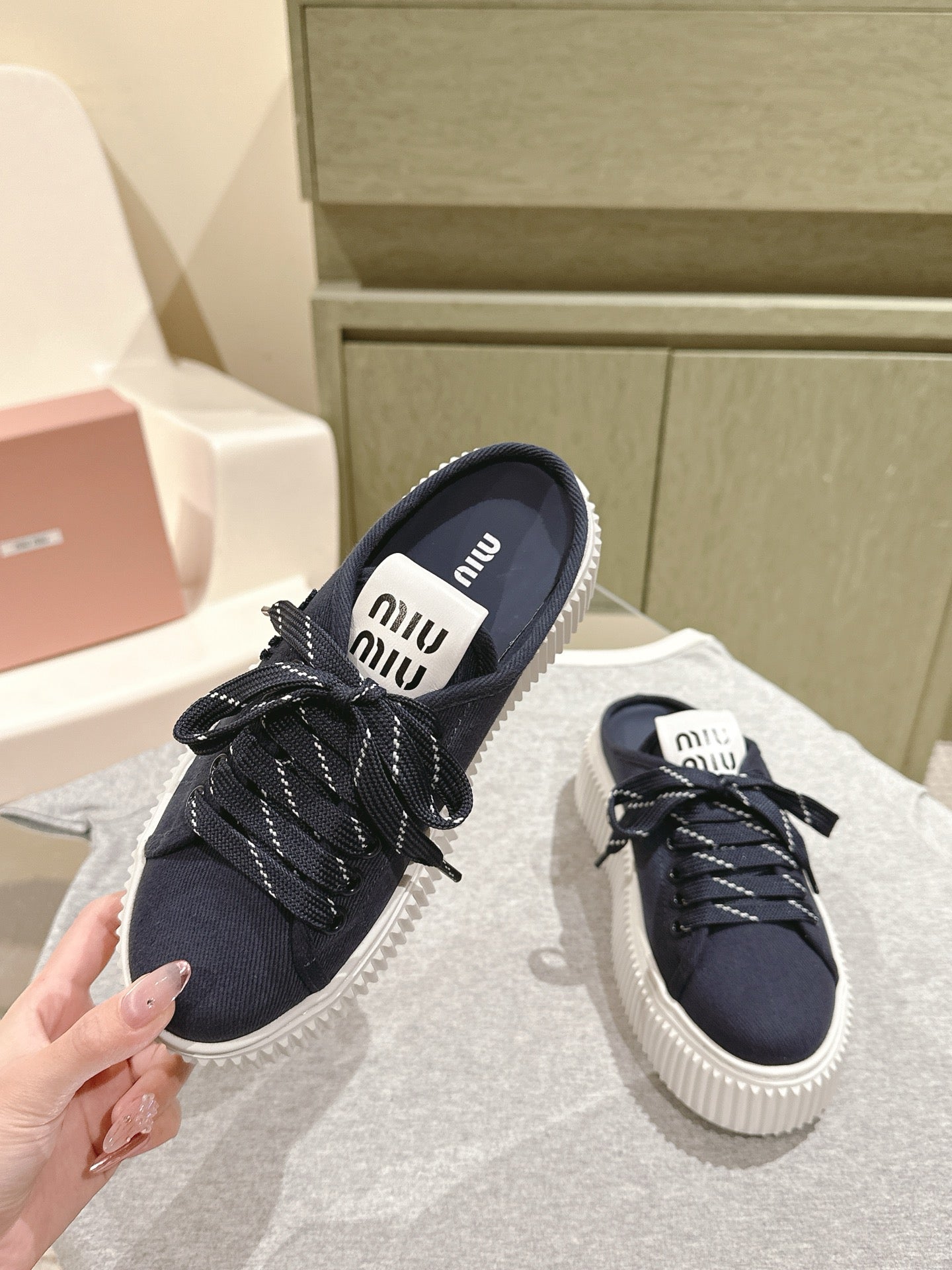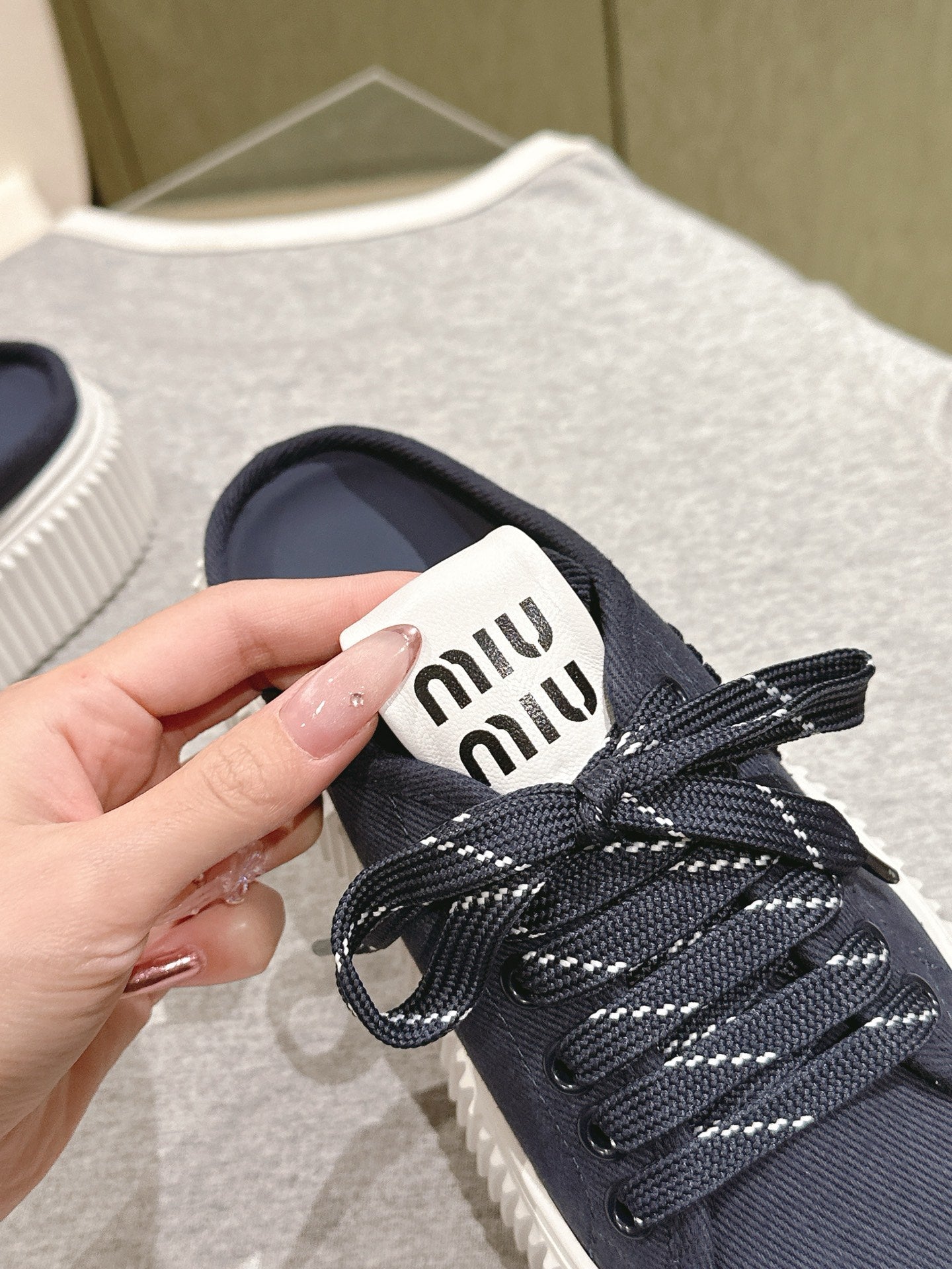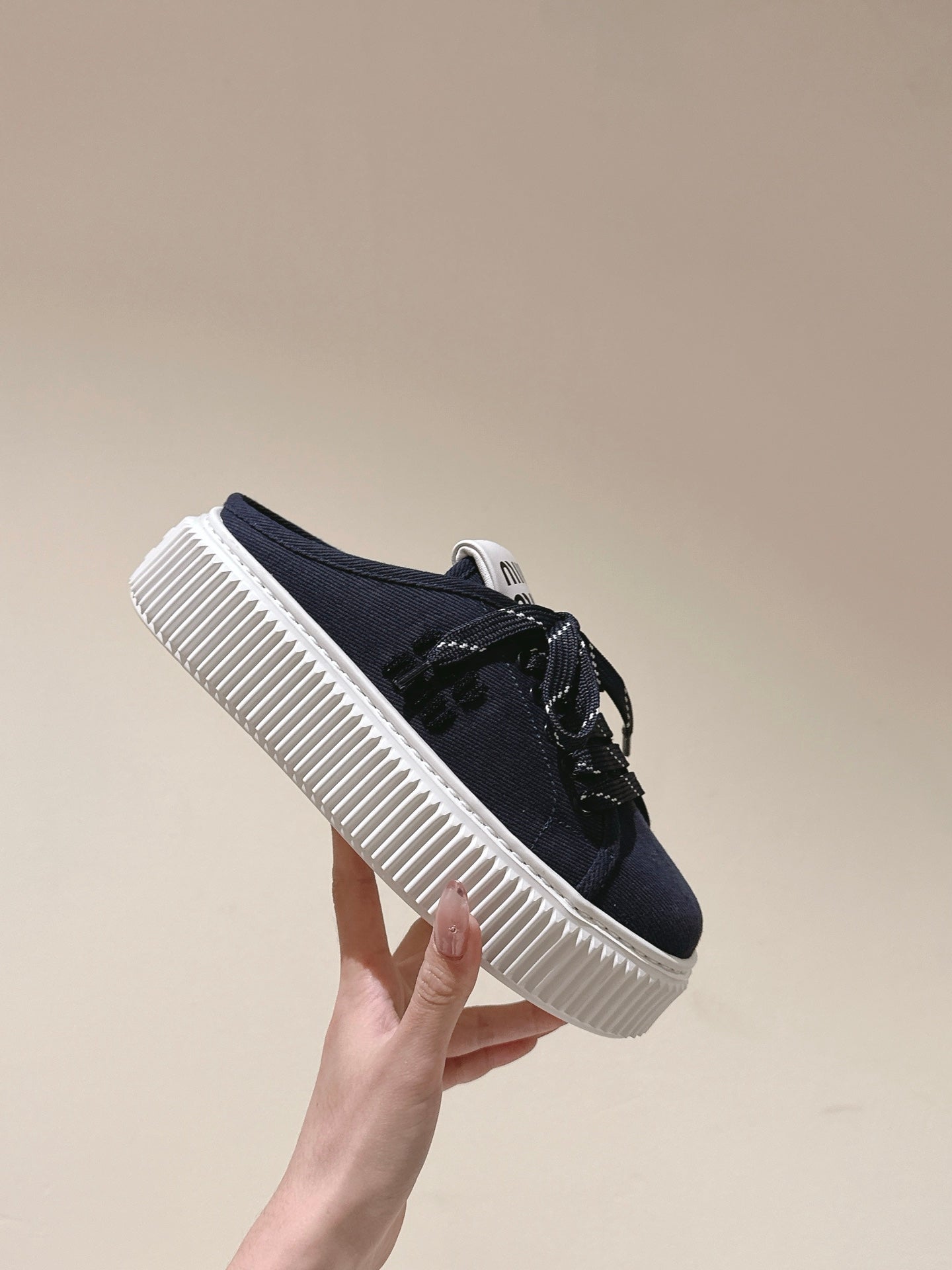 Miu Miu Biscuit Shoes Platform Mules Navy Denim Canvas 532874