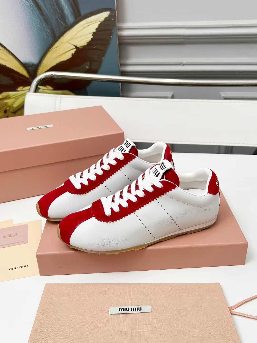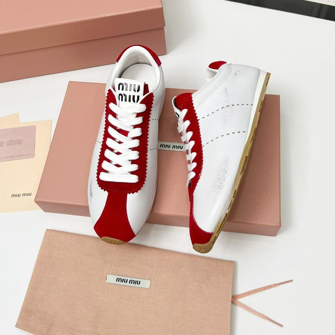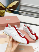 Miu Plume Sneakers Red White Cowhide Suede 456352
