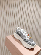 Miu Technical Sneakers White Black Cowhide Fabric 445808
