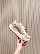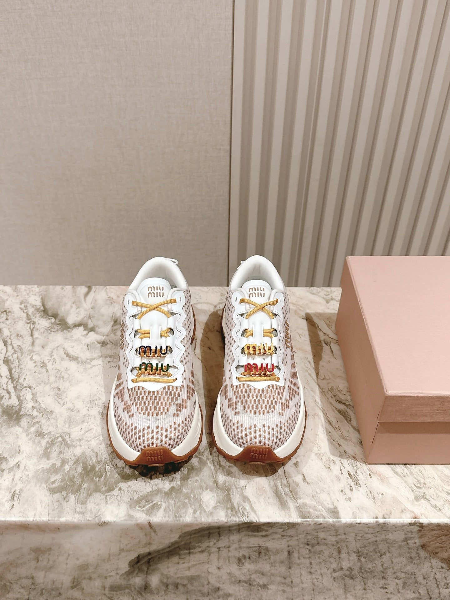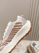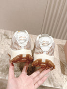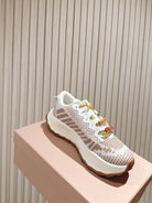 Miu Technical Sneakers White Light Brown Cowhide Fabric 445810