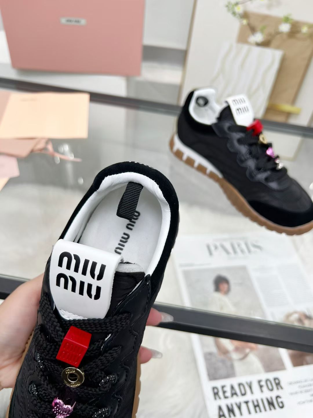 Miu TYRE Sneakers with Decorative Buckle Black Suede Technical Fabric 456334
