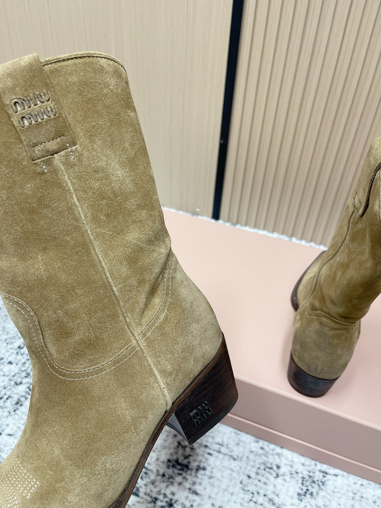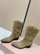 Miumiu Latest FW Western Cowboy Boots Beige Suede 533968
