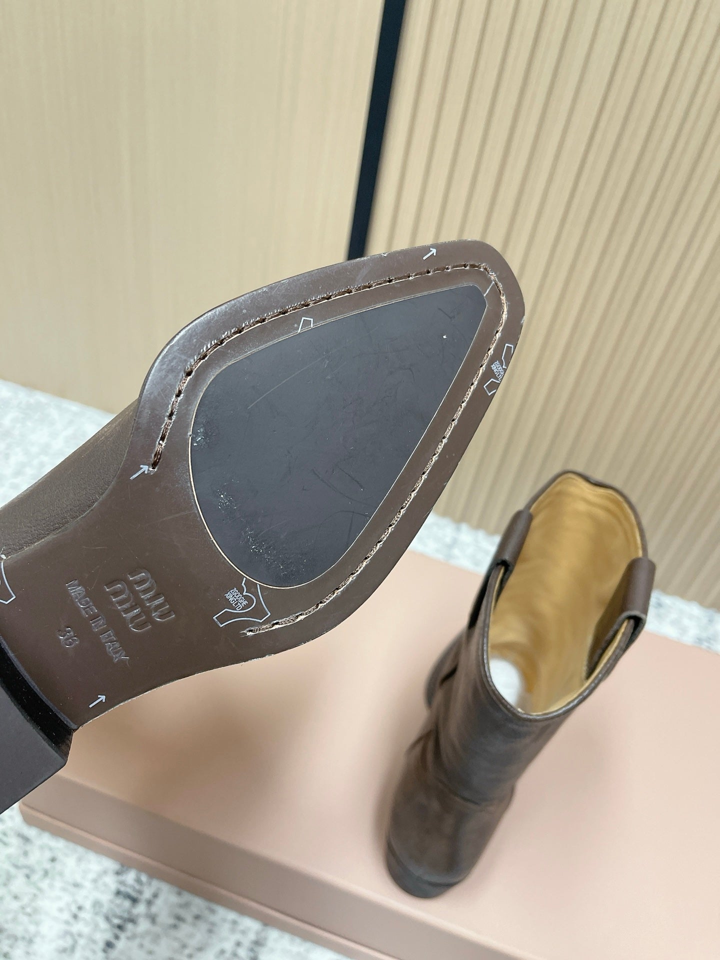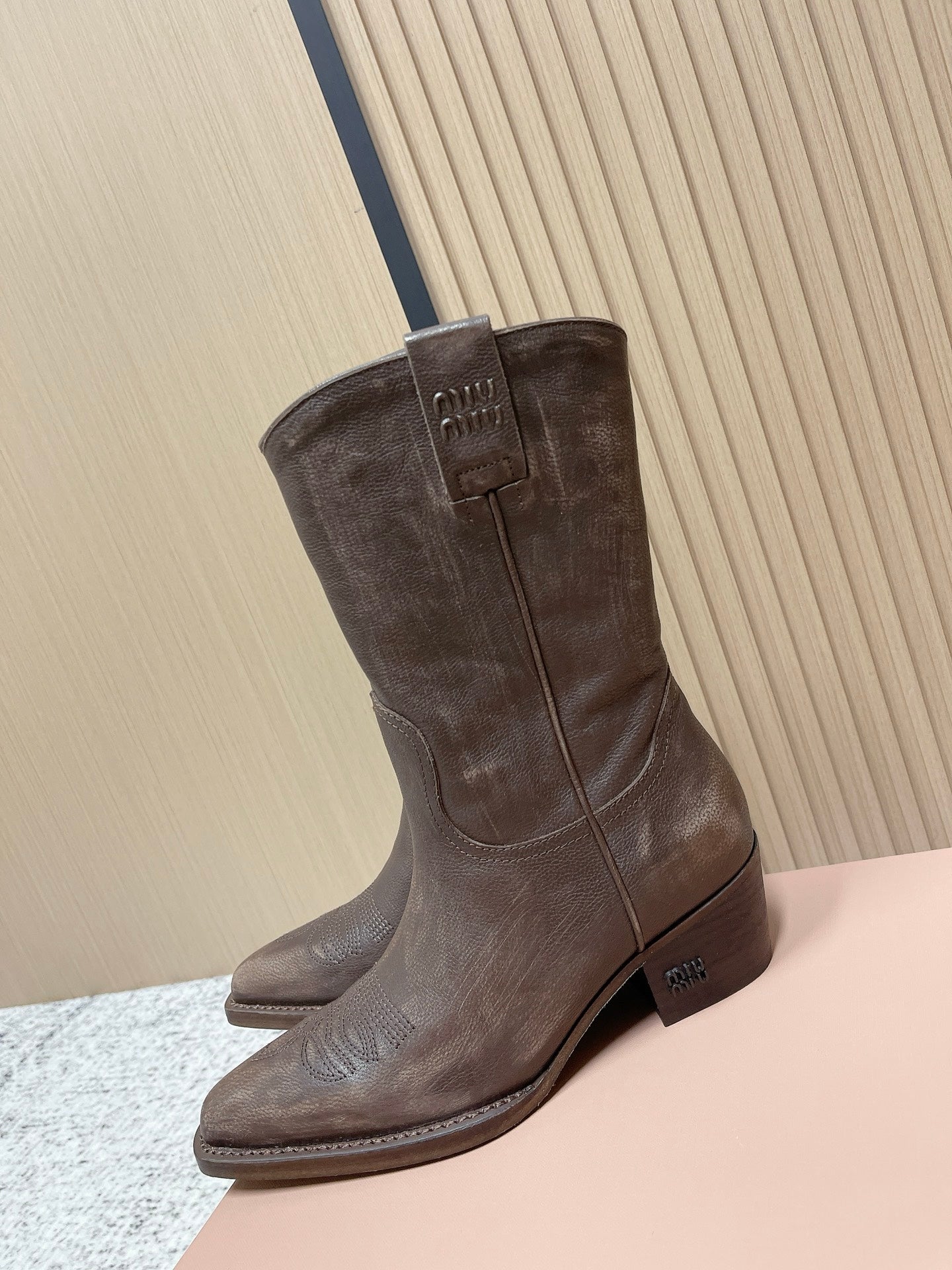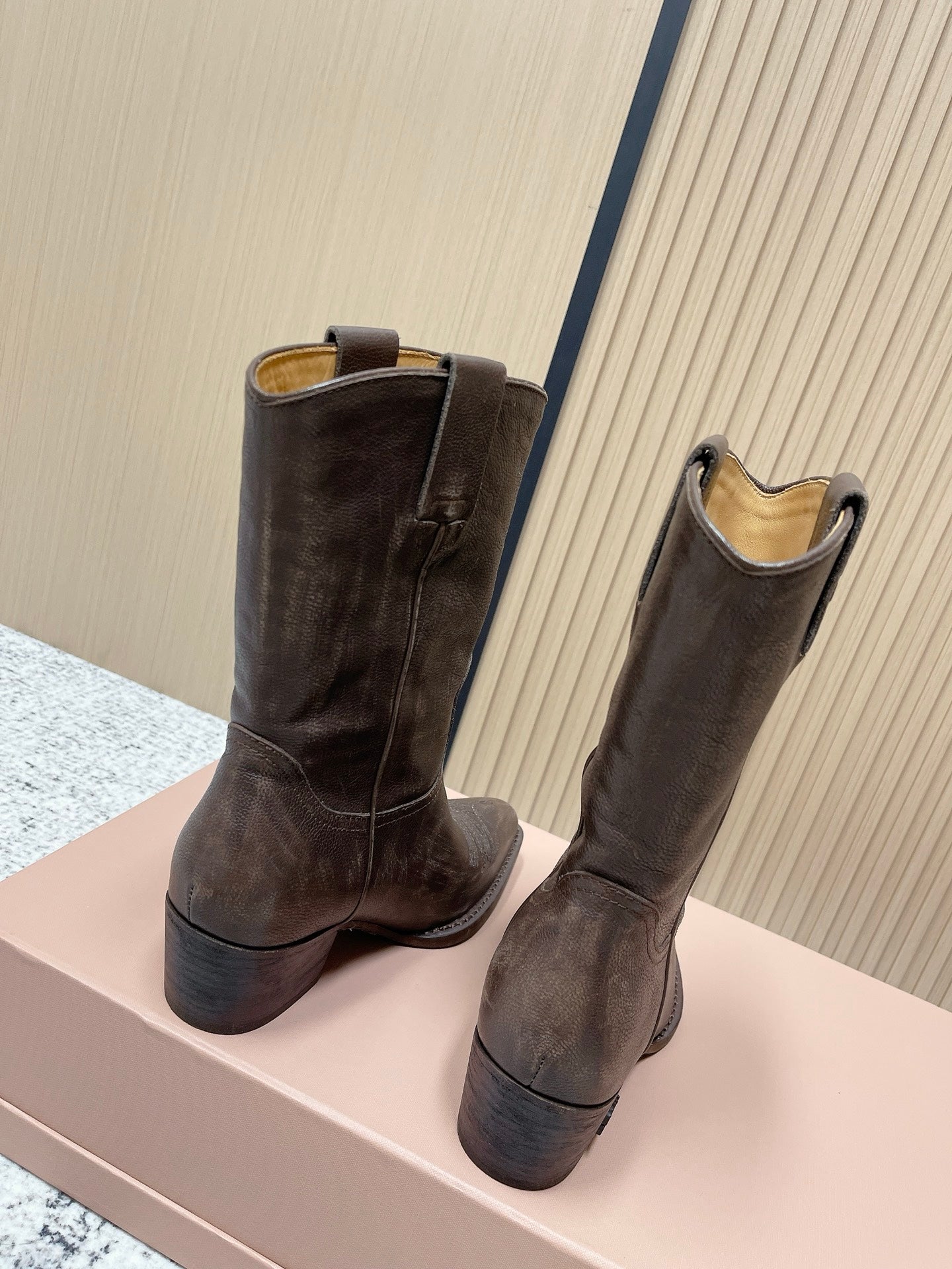 Miumiu Latest FW Western Cowboy Boots Brown Genuine Leather 533965
