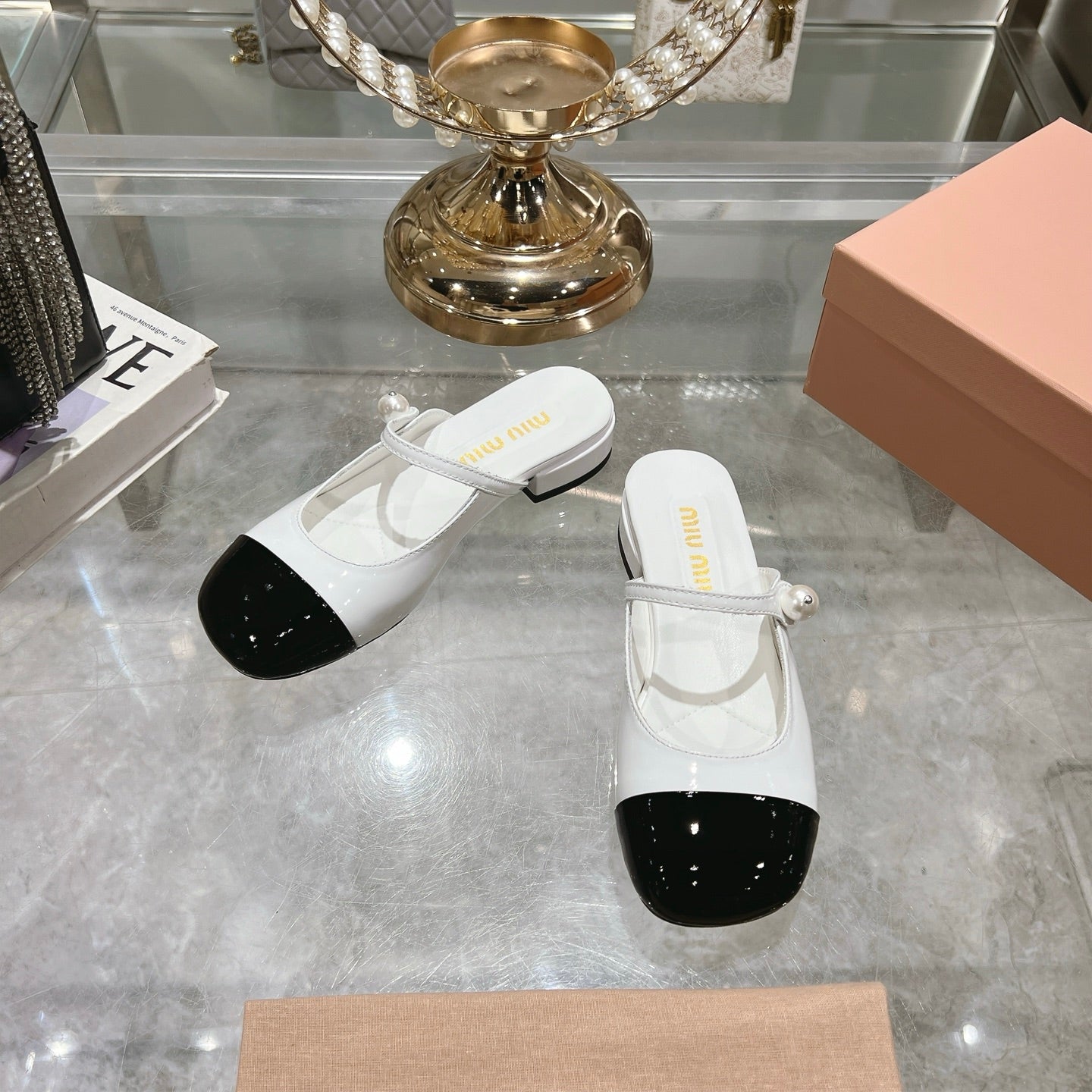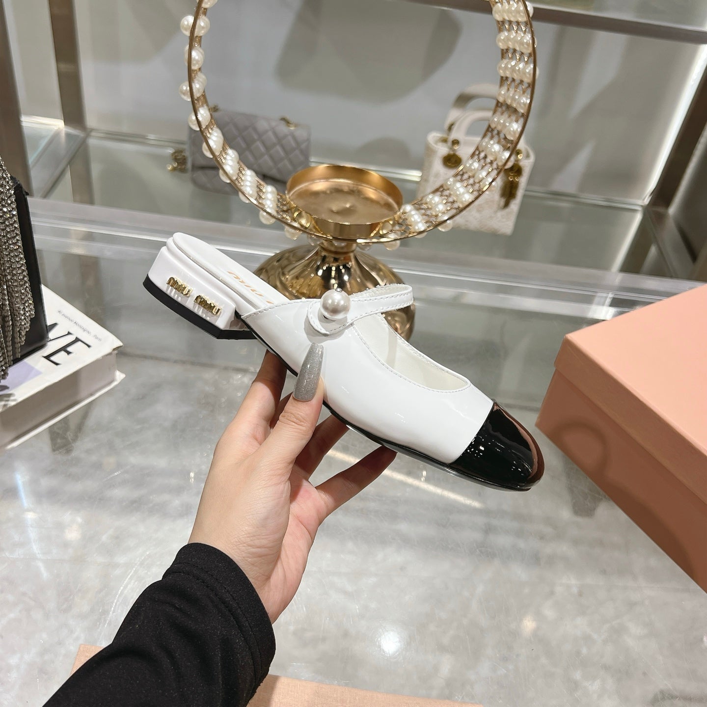 Miu 25C Flat Mule Cream Patent Leather 235308