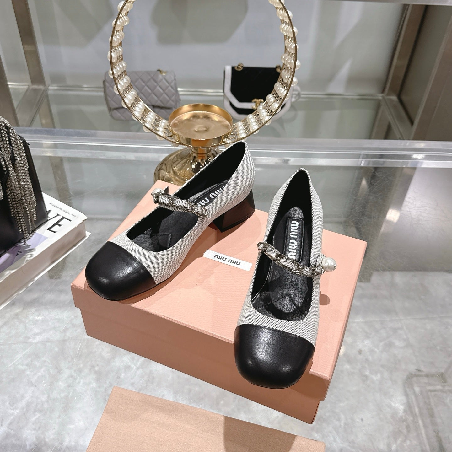Miu 25C Mary Jane 75MM Beige Gray Mix Black Fabric 235368