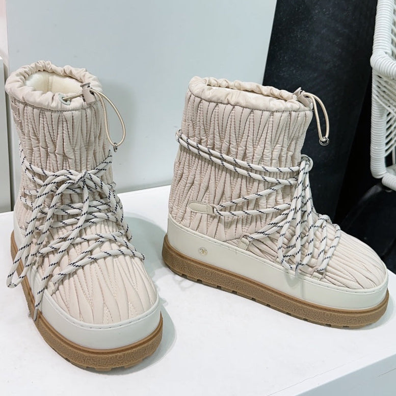 Miumiu 25 Boot Cream Nylon Rubber 511264