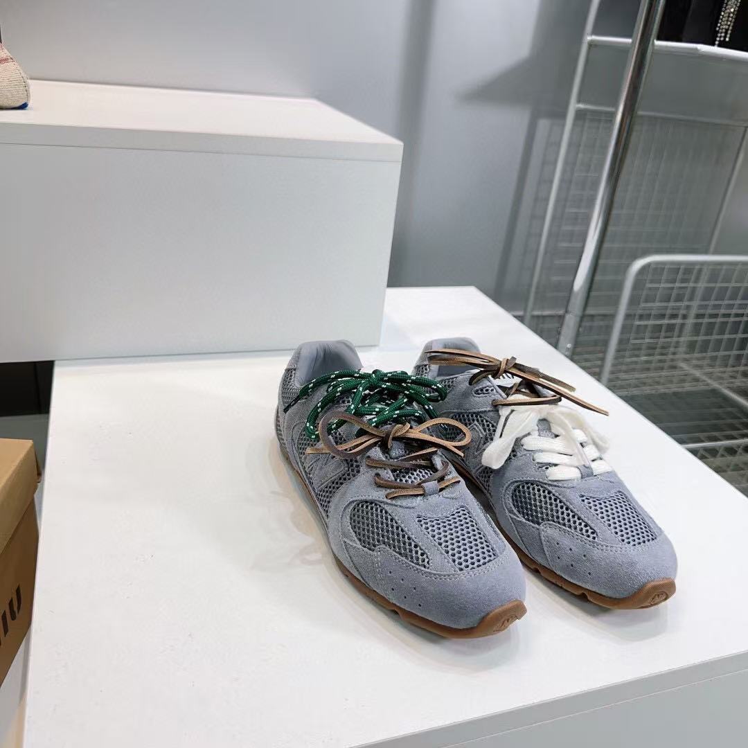 Miu Miu Biscuit Shoes Chunky Sneakers Cream Denim Canvas 532875
