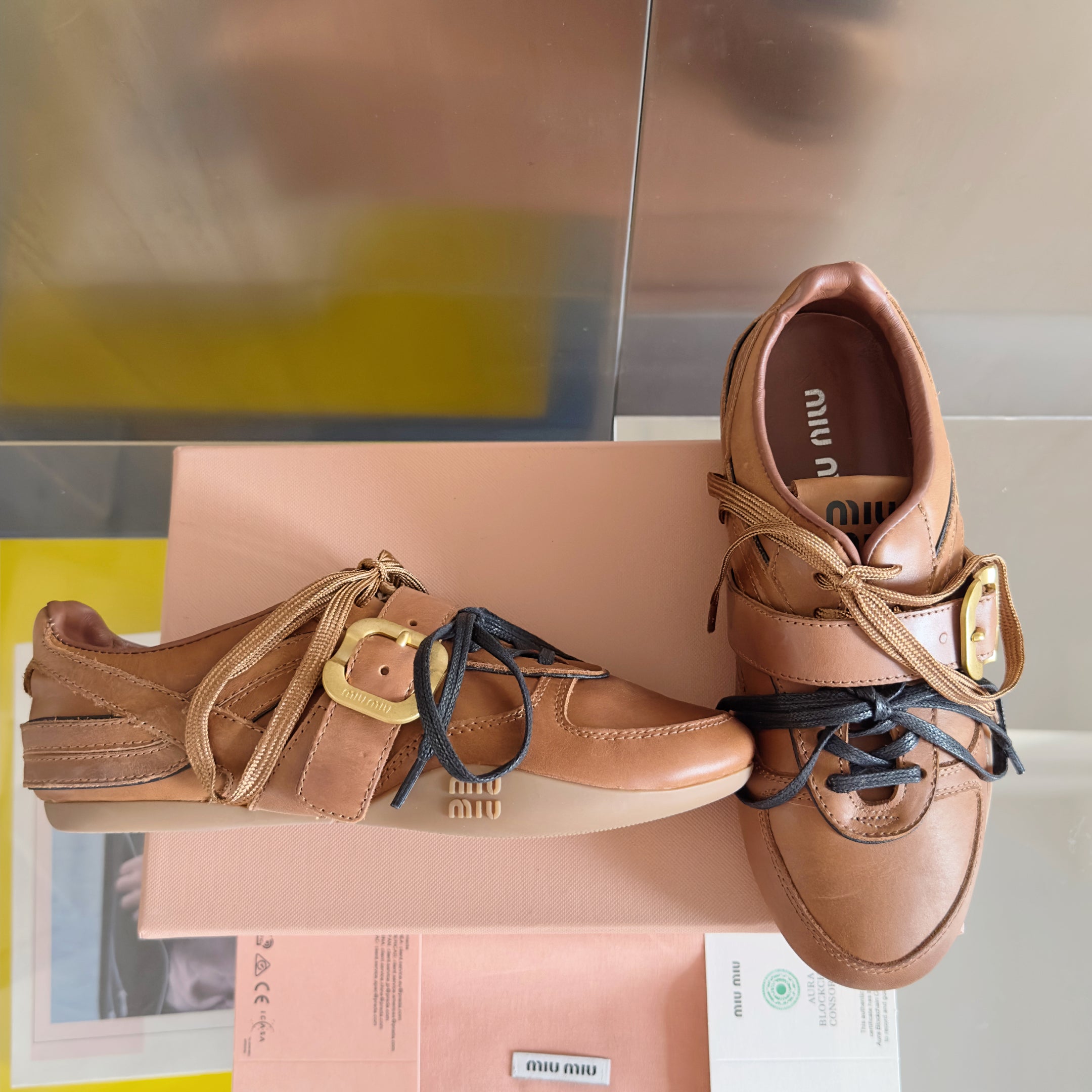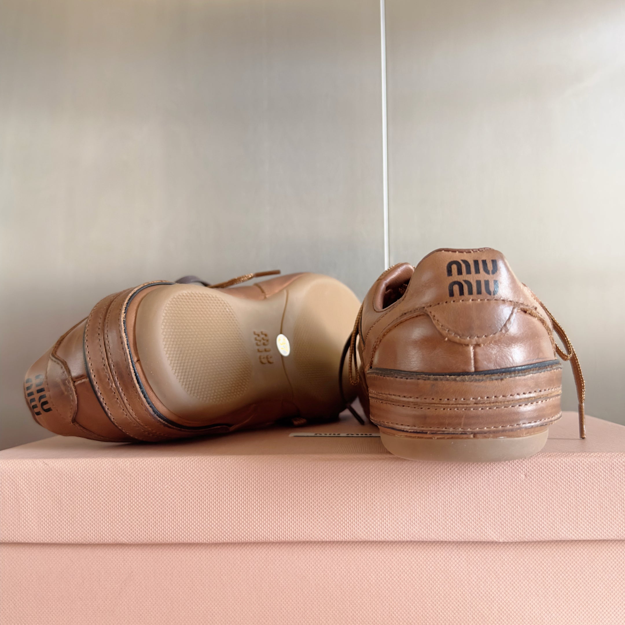 Miu Gymnasium Sneakers Caramel Cowhide 509750
