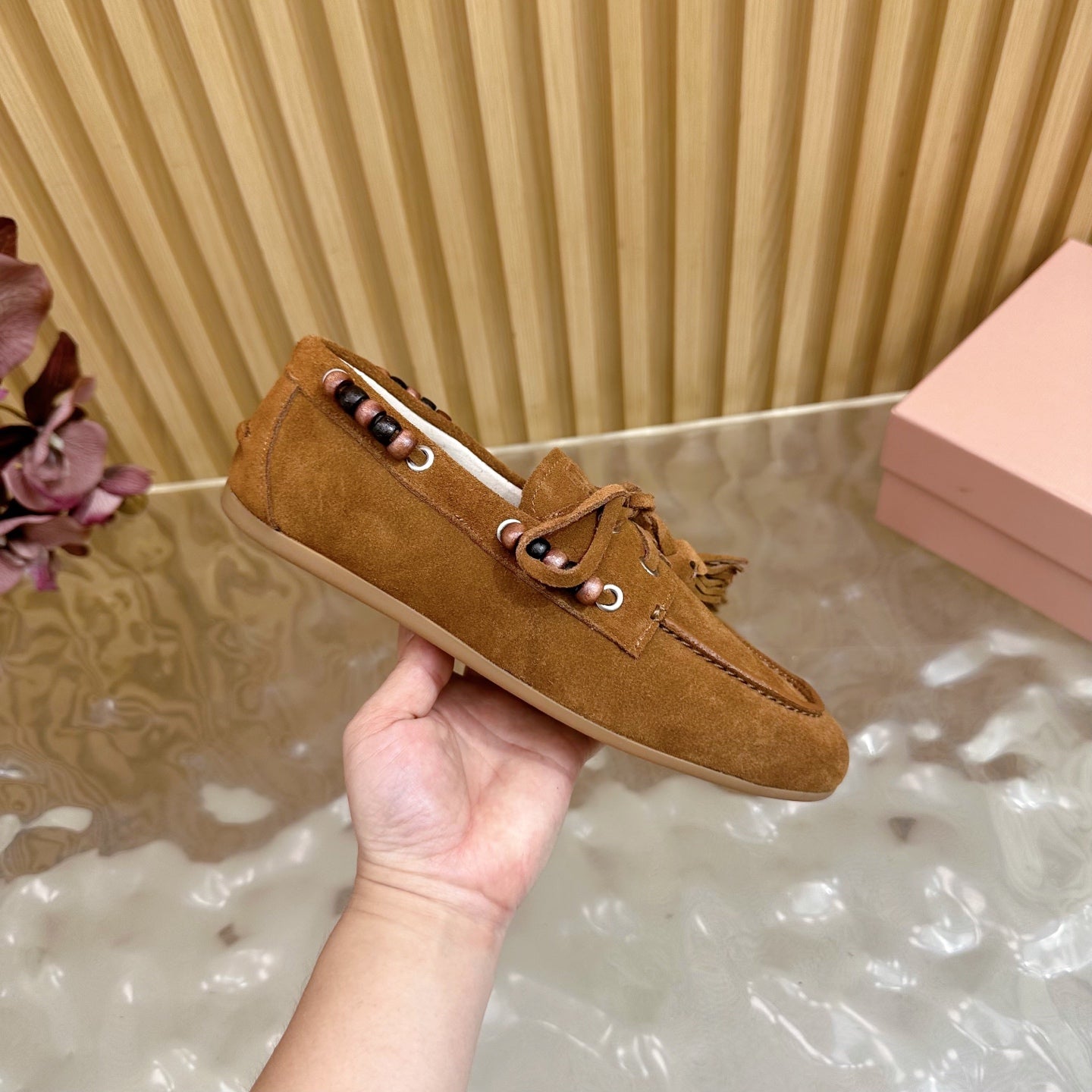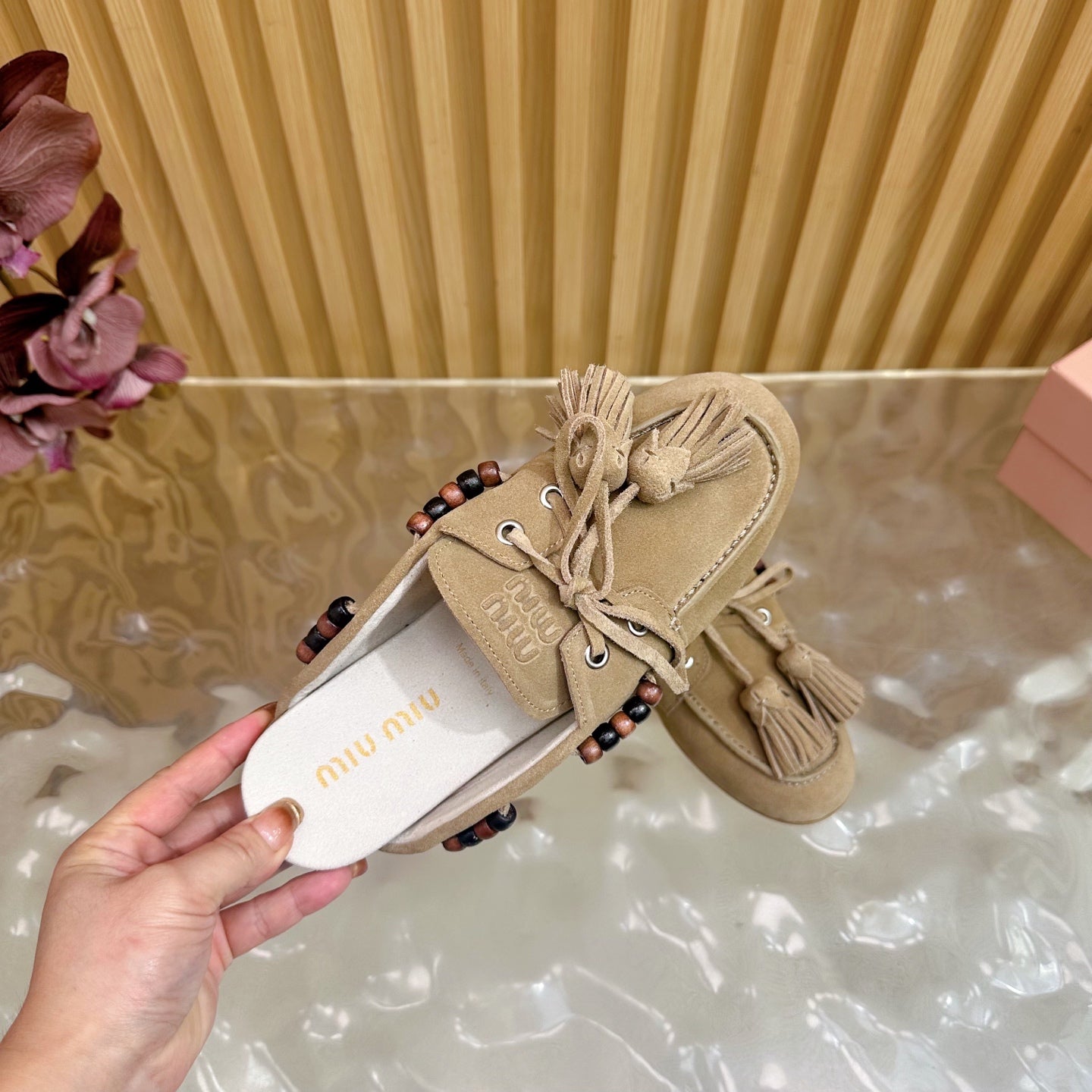 Miu Laces Eyelet Flat Loafer Beige Suede 498166