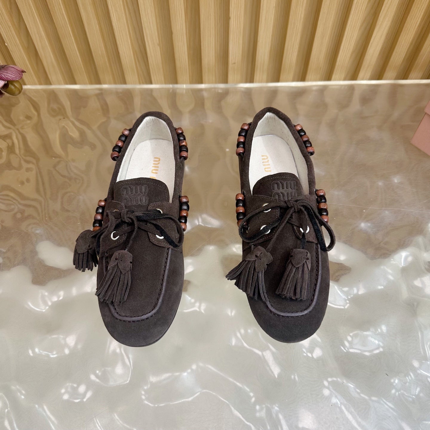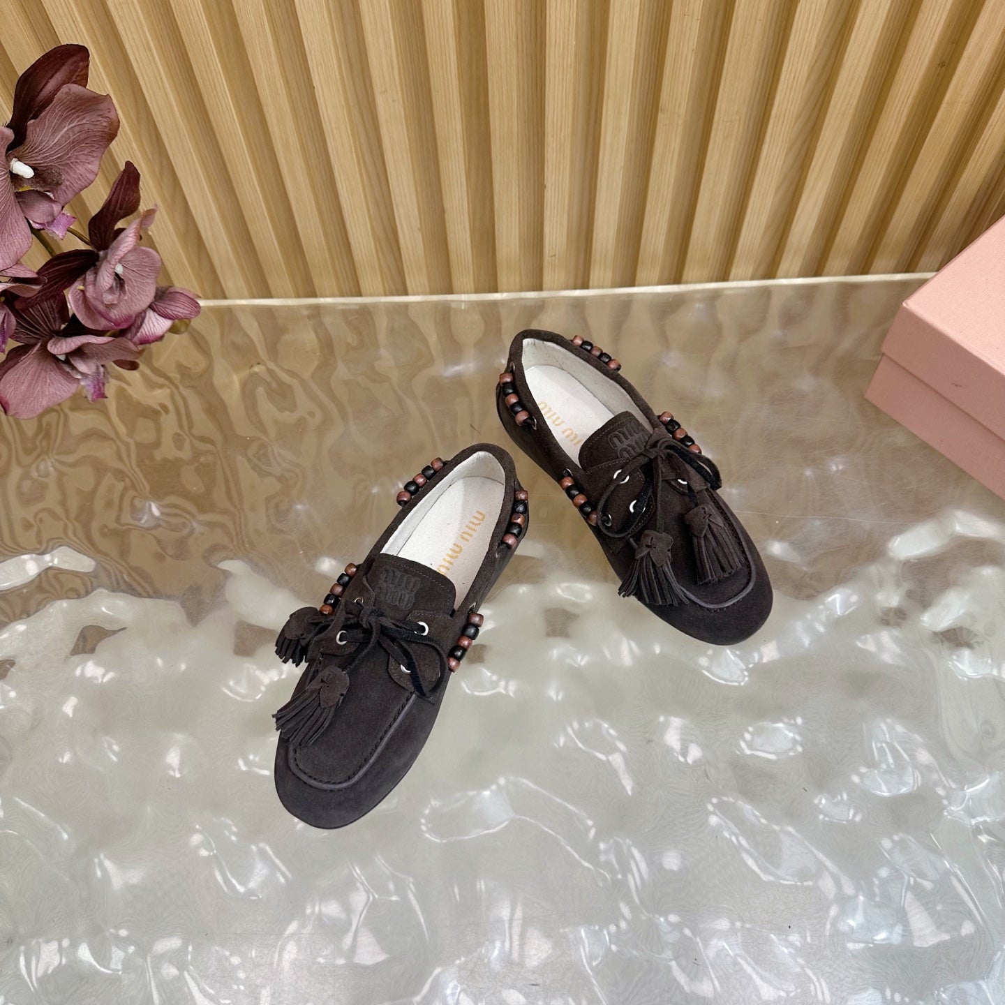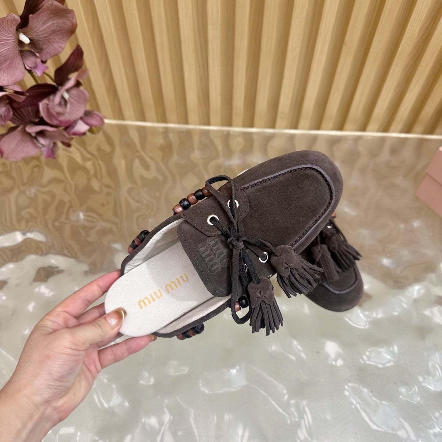 Miu Laces Eyelet Flat Loafer Deep Brown Suede 498167