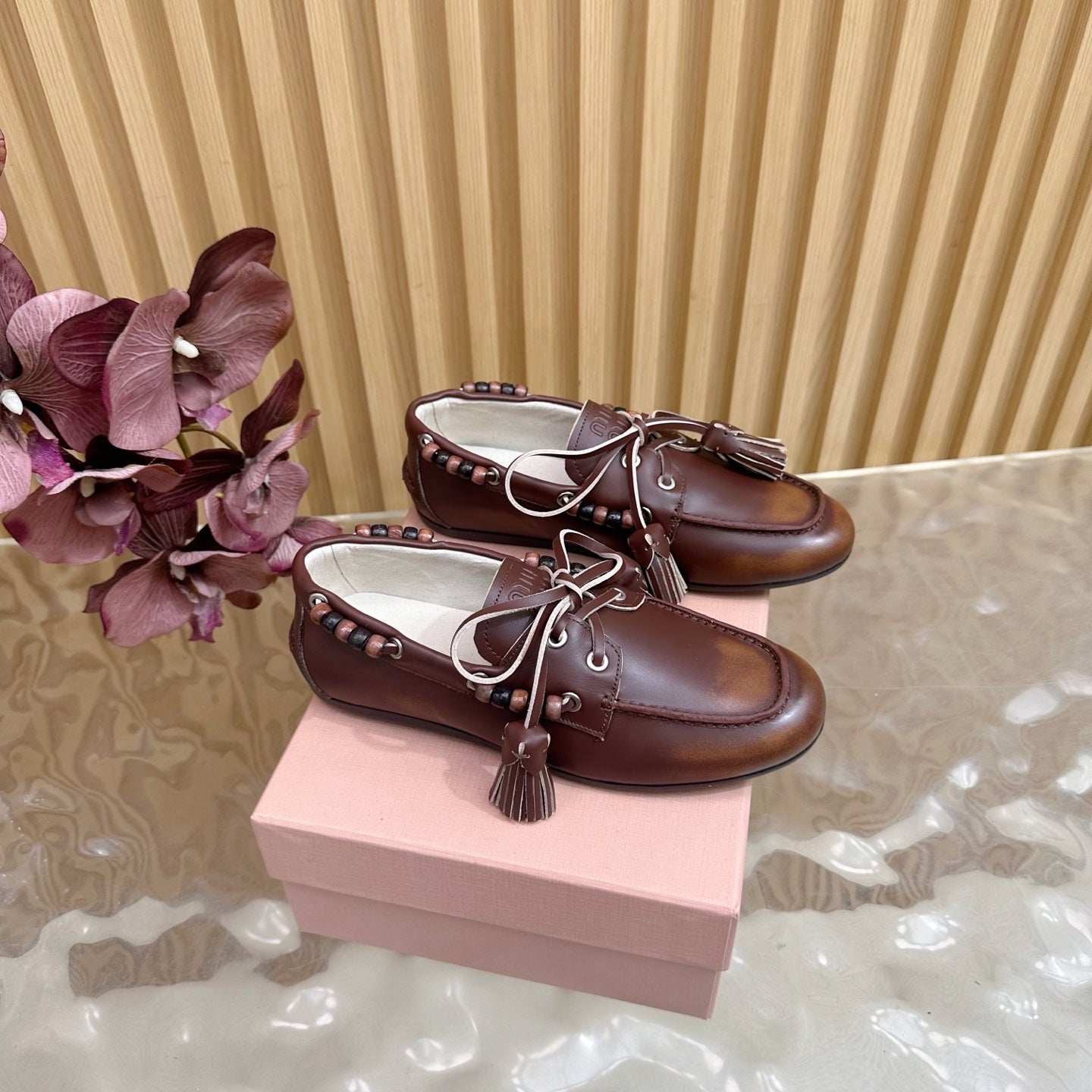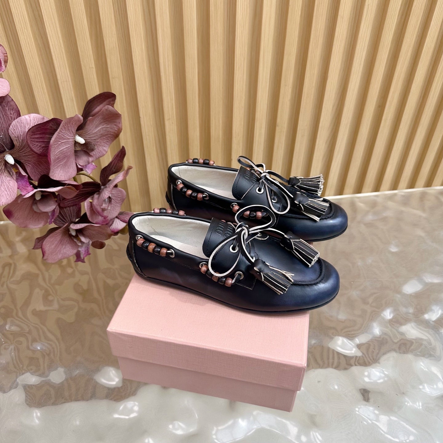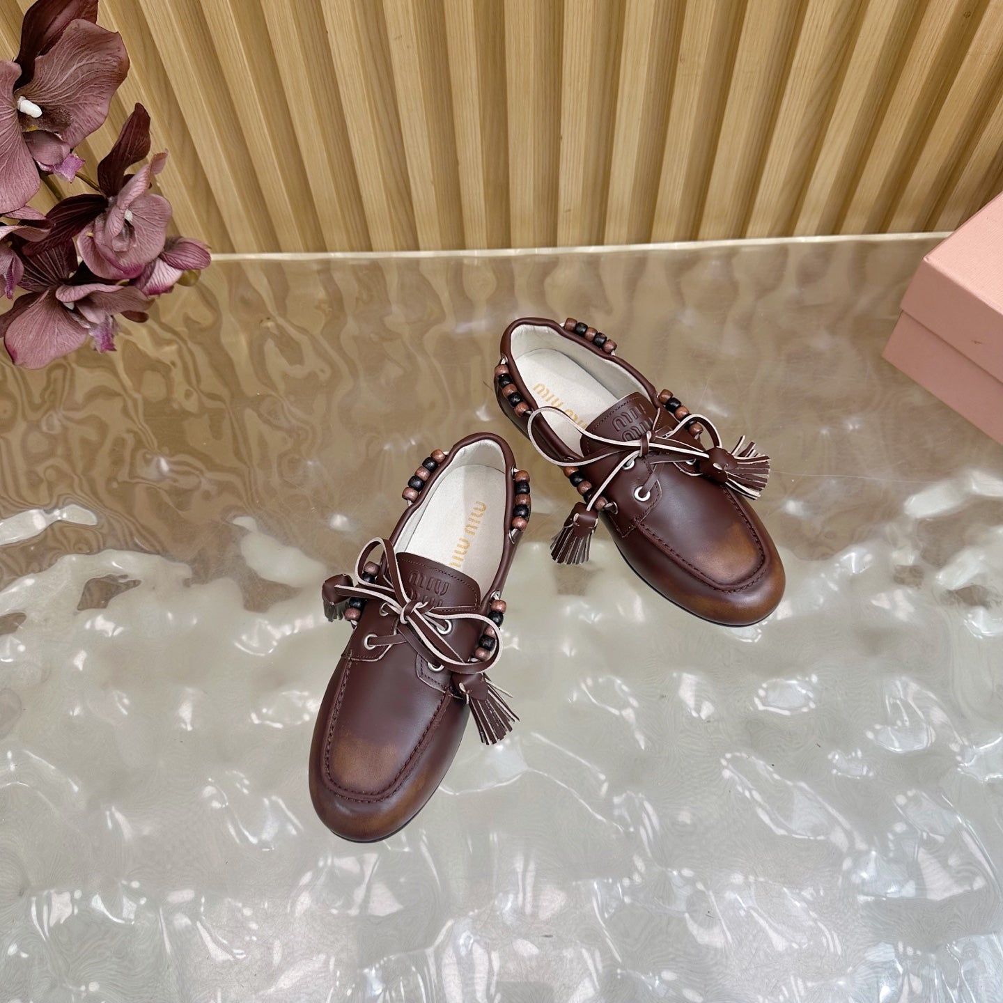 Miu Tassel Loafers Dark Brownish Polished Leather 490952