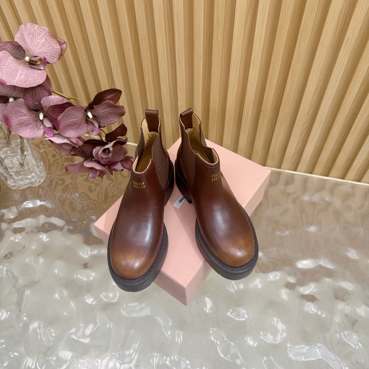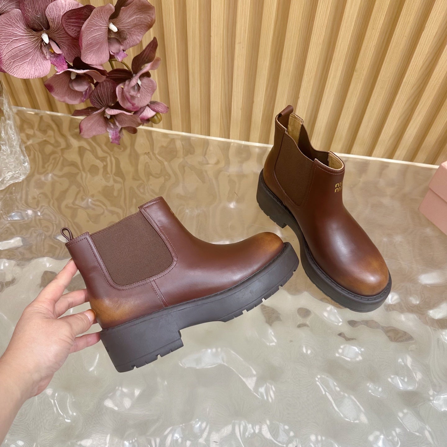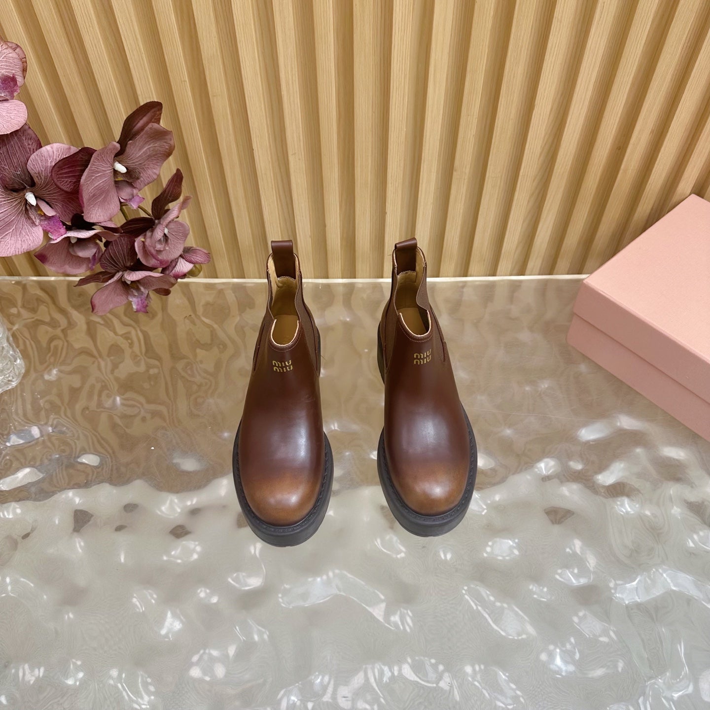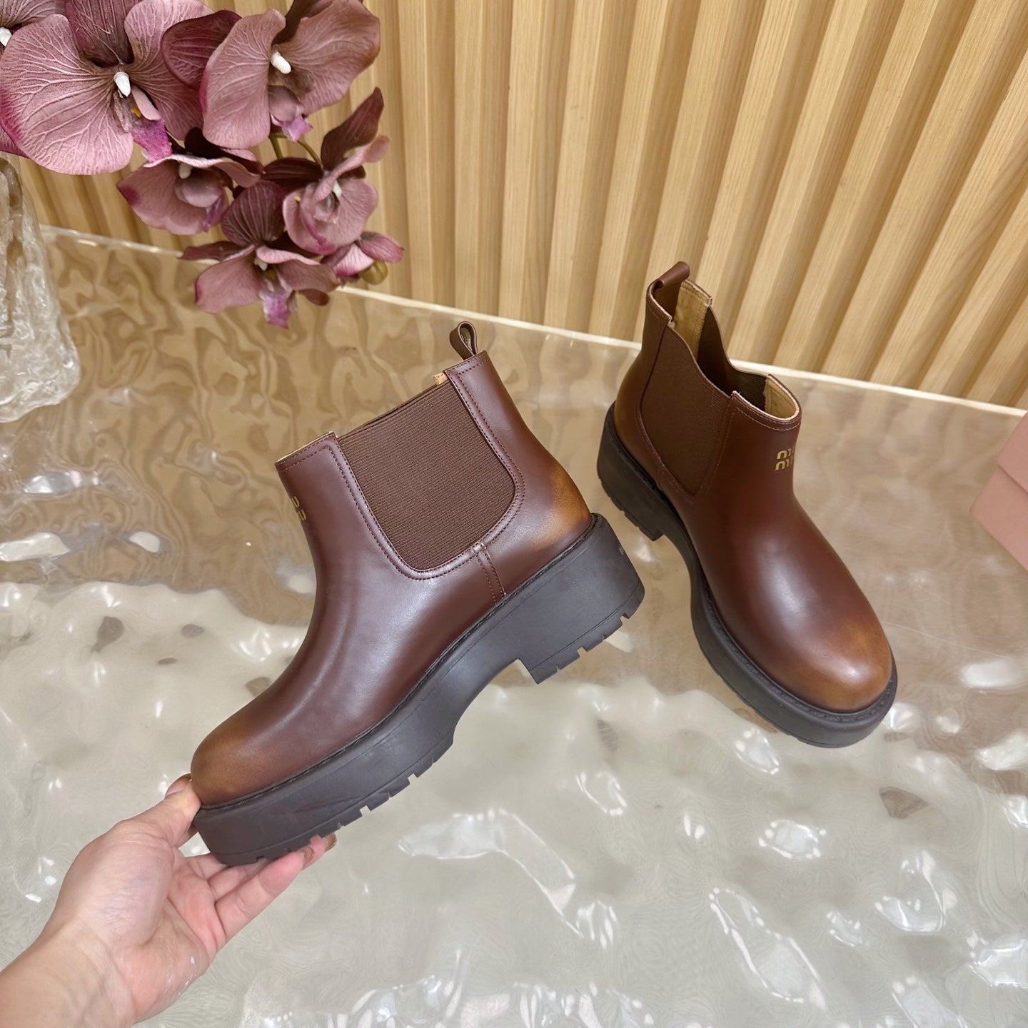 Miu Platform Chelsea Boots Deep Reddish Brown Leather 498176